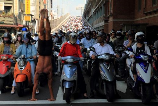 作為一位表演藝術工作者,黃明正不僅走出了黑盒子劇場(之前曾為專業舞團舞者),走入常民生活裡,而且用一雙手,展現難得一見的決志。單單一個倒立拍攝全台灣的構想,便連帶引發了這一個演出呈現和公視與國藝會補助的「紀錄片專案」;政府說要提倡文化創意產業,眼前不正有一個最好的例子?!