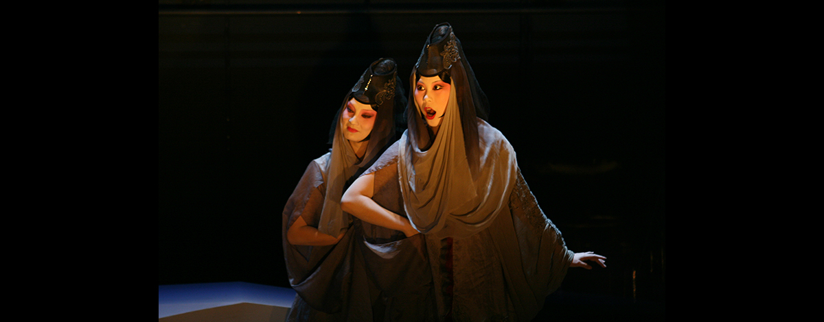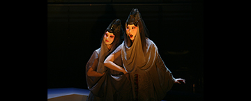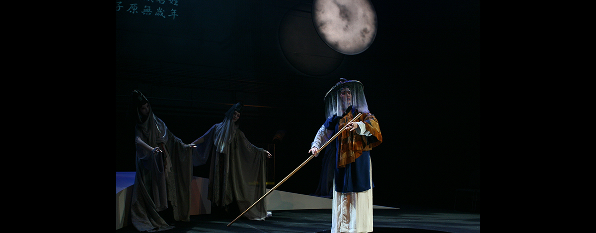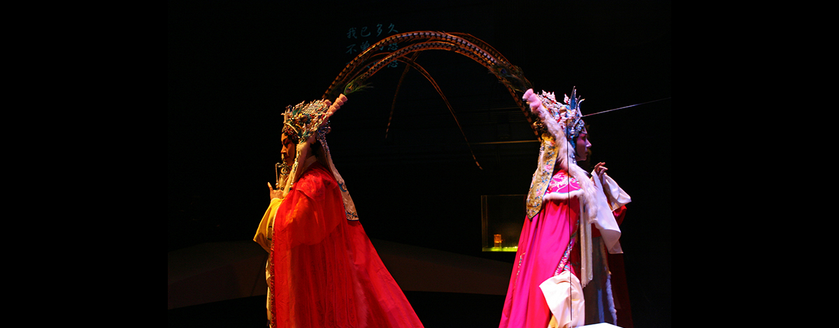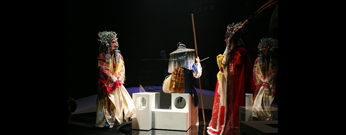 《青塚前的對話》是一齣「前衛、實驗」小劇場作品。藉由王昭君、蔡文姬這兩個遭遇相近、時代不同的女性跨時空一人一魂的對話私語,探究文學本質甚至人生真幻。全劇以「相互鏡照、層層疊映」為舞台設計原則,呈現出迷離恍惚、虛實莫辨的氛圍 ;唱詞念白古雅典麗,卻刻意翻轉詩化語言的意義,藉古典嘲弄古典,調侃了歷代文人,也嘲弄了編導自身。昭君以靈魂的姿態回顧自我一生,而其與文姬的對話,又是漁婦的江上一夢,層層「後設」,深刻體現京劇小劇場的本質,也可看出國光劇團企圖探索京劇另一種可能的用心。
