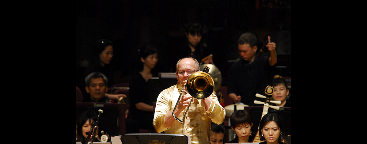 林伯格在世界樂壇素以“長號鬼才”著稱,他是率先將長號提升為獨奏樂器的先鋒,其誇張具戲劇性的表演,加上無厘頭以及勇於嘗試創新的個性,大大提升擴展長號的演出形式。在這場世界首場長號與國樂團的音樂會,《靜思》長號小協奏曲、《蒙古幻想曲》、《野玫瑰》等三首作品都是特別為長號與國樂團量身訂做,也是世界首演。此外林伯格還將其創作的《Gundraan》改編給長號與國樂團,其中鍾耀光還將京劇名段《擊鼓罵曹》改編給長號,以長號模擬京劇唱腔,徹底顛覆傳統京劇概念,長號與國樂團的震撼組合,充分激盪出世界樂壇新元素。