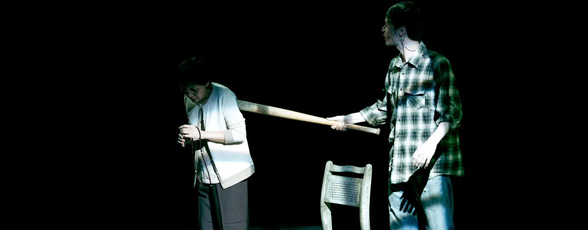 故 事描繪一個假扮成房客的強盜,佯裝承租老太太家中的一個房間,因見老太太眼盲而陡起惻隱之心,於是決定繼續佯裝房客,兩個人物就此展開對話。談話一開始看 似稀鬆平常,卻漸漸綻露出道德信仰的衝突與兩代情結的難題。在這過程中,強盜為了掩飾自己最初的犯罪動機,加上自尊情感的推波助瀾,數度變異身份。本劇故 事結構,仿若一場社會事件,進入加害者與被害者的對話場景,讓觀眾在漠然簡化善惡而渲染聳動的新聞媒體之外,得到另一種看待時事的眼光。劇中由亞太影后陸 弈靜飾演老太太。此劇本獲2008年台北文學獎舞台劇劇本推薦獎。