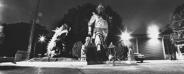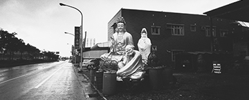 自先前的「海市蜃樓」計畫起,姚瑞中逐漸發展出一種從地方街廓、鄉鎮縣市、島嶼國境,一路擴及東亞地緣關係脈絡的「全境觀伺」視野。但不同於「海市蜃樓」計畫的政治地理學關懷,《巨神連線》系列穿越台灣民間社會與寺廟文化的表層,直指其背後的精神結構與欲望洪流。面對巨大神像的興衰起弊,姚瑞中既沒有傳統民俗攝影過於熱切的耽溺凝視,但也不妄加批判,以全然疏離的姿態冷眼旁觀。透過實地走訪的地毯式踏查、攝影書出版,以及「檔案陳列室」型態的陣列呈現等等攝影實踐之擴充,《巨神連線》系列不僅勾勒出這座島嶼獨一無二的文化景觀,更在不貶損其內涵的前提下,提出一種調和性的分析視野,為後續的延伸討論開啟寬闊無比的議論空間。(主筆委員/王聖閎)