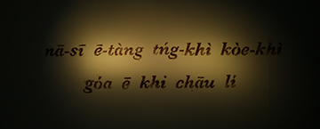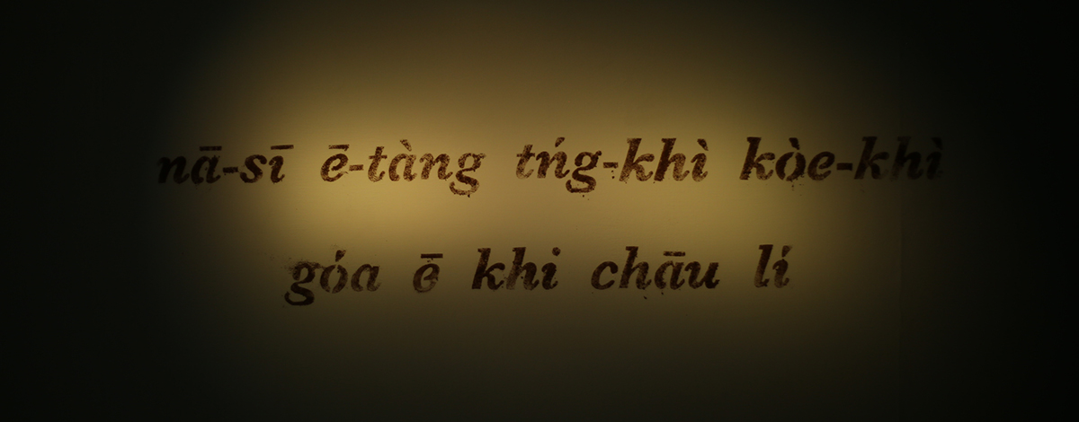 延續探詢大時代裡的家族故事,創作者以更為精練的語彙,創造出極具溫度和詩意的展現。在故事重建過程中,那未明的、不可言說、無法述說的,以充滿弦外之音的方式,把影像所不能及的時空給牽引出來。展覽應用極為簡單的元素:以家中打掃的塵土來書寫,以白話字(閩南語羅馬拼音文字)揭露語言的政治,搭配黃色光暈、大理石、圖案以及照片、影像,陌生的、疏離的、聲音的、話語的,看似灰飛煙滅、短暫的,在展覽空間中卻如碑文般,創造出永恆感。(主筆委員/吳瑪悧)