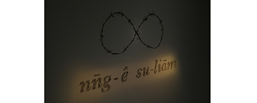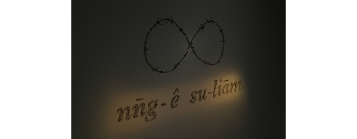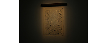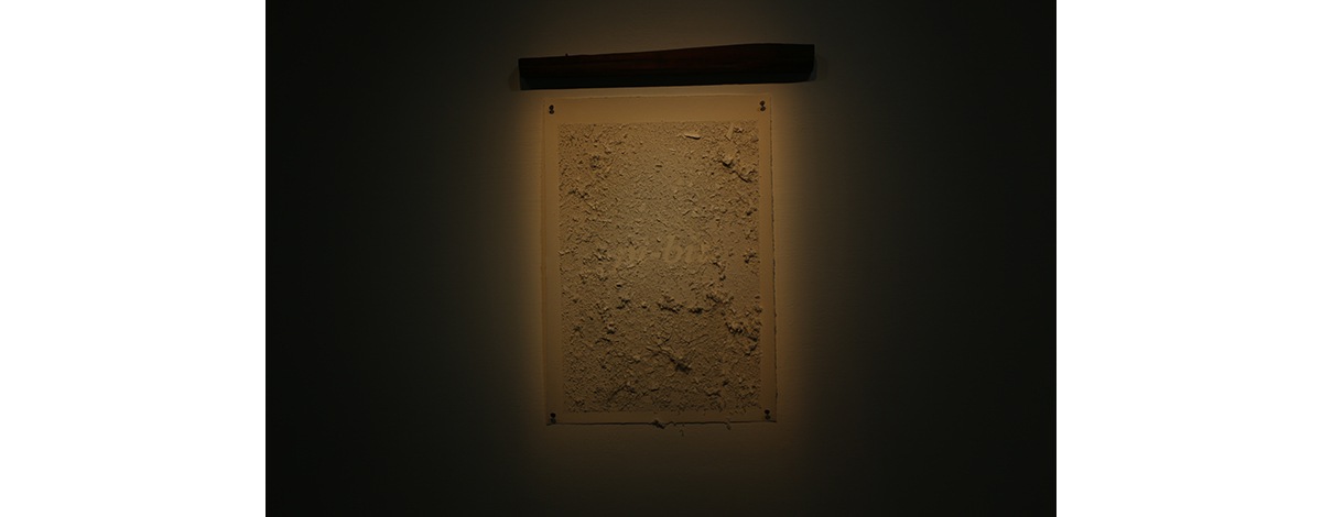 不僅如此,王鼎曄也邀請長輩們回到三星的老房子一起打掃,並使用打掃的塵土創作了九件作品,每件作品皆以塵土舖陳,在牆上顯現教會羅馬拼音所拼出的台語文字。塵土以微光朦朧的照著,觀者念著牆上字母的發音,塵土、微光、發音拼湊出幽幽的氛圍。
