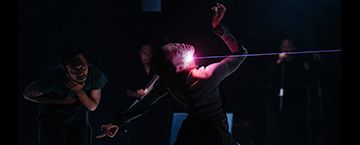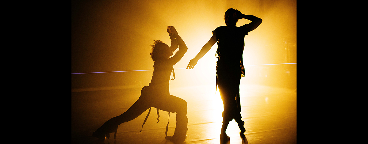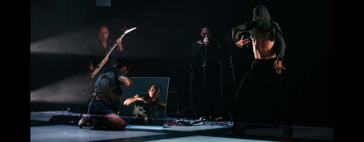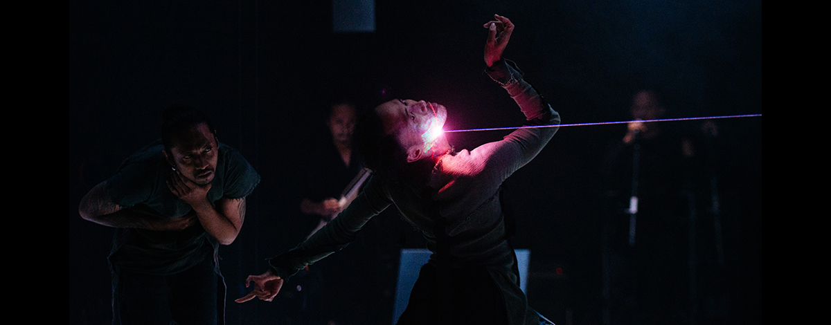 最終呈現的作品,由Senyawa樂團以模糊喉音到不斷重複如咒語般的印尼語唸禱開啟,內容意指「將所有命名從地球上帶走」。兩位舞者則變換著姿勢組合,隱喻不同宗教的祈禱,再慢慢從兩人虔誠形象,轉換至人與神祇,由互相祝禱走向對抗。在吉他獨奏與自製樂器的音效中,舞台雷射光束先跟著舞者身體移動,逐漸由一條光束鋪陳到二與三條,在空間中形成幾何三角。之中,音樂向前滾動,舞者則以動作追趕競爭,也用身體關節的驅動開展幾何樣態,音樂與舞蹈間的速度感不斷凝聚、能量越發巨大,此時,雷射光束從三角擴充到包括觀眾席的完整劇場空間,三條射線透過鏡面折射不斷遽增⋯⋯最終,音樂漸遠,太初之始終連結至無限。