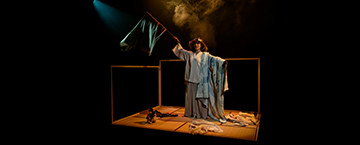 具體而微的世界一舞台,及其省思。編劇鄭尹真著魔投入的獨腳戲,搭配王墨林靈活場面調度,後設探索延伸莎劇之可能;榻榻米大小的表演空間,方寸即天下。藉原劇不曾現身的三女之母,召喚,卻不填補莎劇的缺席。母之幽靈,縈繞三段獨立亦相繫的演出:愛恨糾纏、撕裂認同,放逐人魔之際的么女;失了天下,亂了方寸的李爾王;母后亡靈自我招喚,冥視中顯啟示。眾生之「我」從失語到囈語,儀式化地搖撼、敲打、鞭笞無所不在的權力幽靈。(主筆/王寶祥)