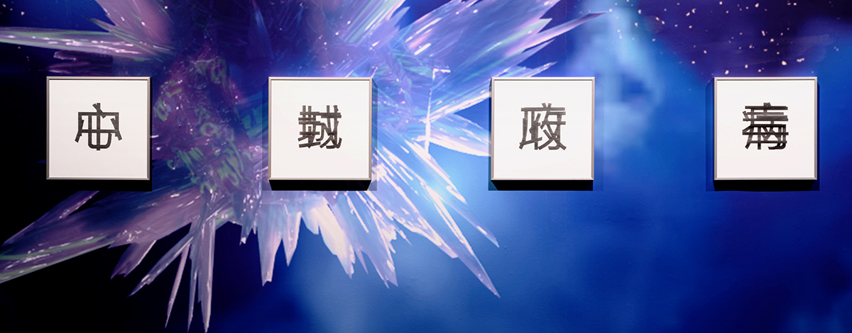 當技術被人所發明並被使用時,透過設定可以讓訊息更容易傳遞,亦可能更容易掩蓋,然而,操作機制的人是誰?我們是否能意識到這些?在新冠肺炎爆發之後,眾多假消息在網路上流竄,但同時也有大量與疫情相關的文字,在中國的審查機制與演算法下被隱藏,這些消失的字詞卻似乎指出那些欲蓋彌彰的事。展場的一開始,致穎先是將兩組共八個被演算法所屏障的字彙,以模擬數位圖像輸出的方式手工繪製於圖紙上,作品《信息》做為展覽的引子,逐步鋪陳技術創造的可視與不可視。