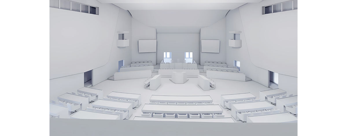 面對抗爭運動的回視,廖烜榛與黃奕捷略過個人視角的故事敘說,也排除象徵化的標語物件;既沒有依附想當然爾的「紀實性」,也沒有凸顯任何英雄式的人物典型。兩位藝術家精準地讓空間與其殘響成為真正的主角,透過建築藍圖、動畫影像及物件聲響的組裝配置,意味深長地召喚抗爭身體的幽微記憶,同時也拆解記憶之宮最深處,那原本封閉窒悶的議場空間,使其看起來淨白明亮、通透不已。這是一場別開生面的思想提案,同時也讓已然消退的政治性想像,獲得一次「重新開機」的續命形式。(主筆/王聖閎)