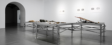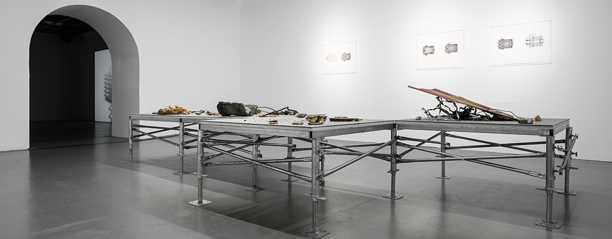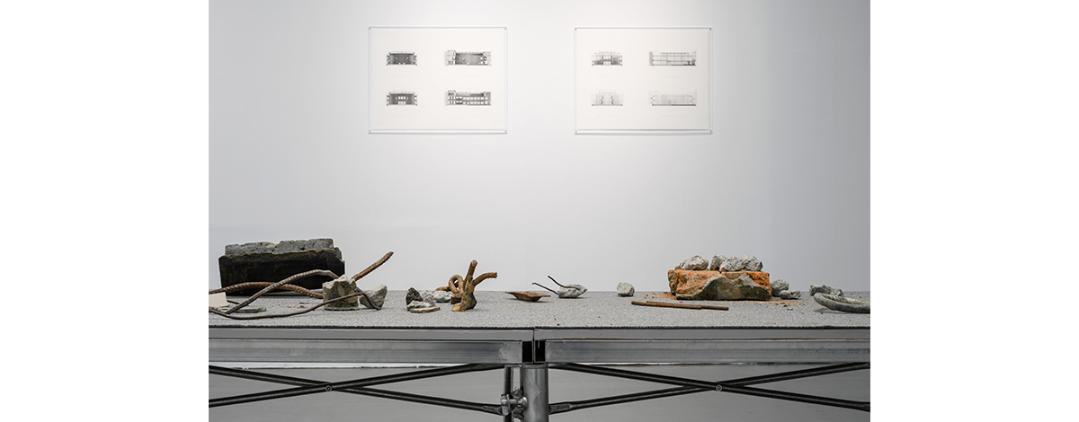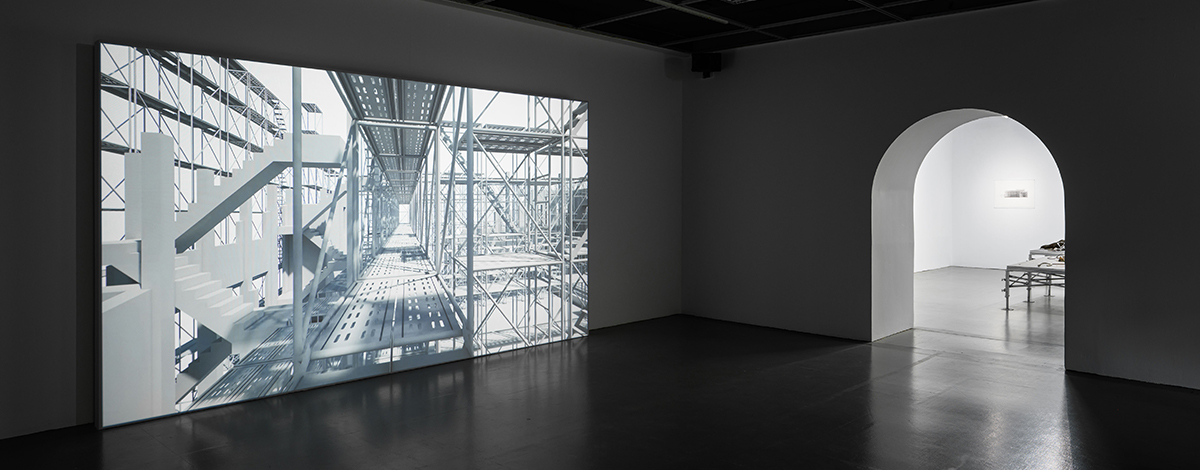 廖烜榛與黃奕捷這一代,從大學一年級開始就不斷面臨各種高強度的抗爭運動,士林王家、樂生保存、華光社區、大埔事件、318⋯⋯,黃奕捷談到 :「同時間,藝術學院都在談行動主義、社會參與,我們的藝術養成好像從那個時候就壞掉了,我們一直看到的事情好像可以藉由創作反映出來,但又沒有一個具體的位置,這樣的議題在台灣要如何落地?或者,在這麼多人討論過的議題裡要怎麼闡述自己的版本?」這些運動所累積的思考,無法在當下被闡述,但在《複本》一作中,他們選擇將樂生保留運動與華光擋拆運動所遺留的廢棄物視為聲音物件,用以製作錄像影片的聲響。對此,黃奕捷提到,「有一次我們經過現在已經是荒地的華光社區,地上都是鋼筋瓦片,想起王墨林說過『每一種宏大的制度都是碎片和廢墟構成的』。318之前,我們經歷過華光、樂生,這些都是318的基礎,人們面對空間被破壞、占奪,試圖在這些聲響中找機會去反撲,從這邊來看318,它就不只是反服貿,而是對空間的奪回以及對制度的懷疑。」《複本》的數位模型面對的是某種秩序的構成與拆解,而在過往的運動經驗裡,拆遷現場總是充滿碎片和聲音,「那些碎片是在什麼時刻從一道牆變成一塊碎片?那個時刻應該發生了很大的聲響。」這些來自過往感性經驗的基礎,填補了《複本》的聲音位置。「我們在面對的問題,都是要怎麼收拾一個運動的殘餘?過了很多年之後,我們對同一件事的認同可能也在瓦解。創作的過程像是在重新整理思緒,過去參與運動時的一切都快速而澎湃,但在這件錄像我們刻意不貼上材質、不賦予它明確的時間,因為這也是我們在問自己的問題:我們是否可以透過這個展覽,把我們過程中考慮過的事情放進來?在冷冽的空間中去測量這個事件的餘溫,這是我們想要在作品中去嘗試的。」黃奕捷說。