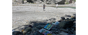 「在畫的過程中當然還是很個人的,可是在寫生團前期的踏查與遊歷的基礎上,是可以大家一起去做的,對我來說這也是團體寫生最棒的一點。」花蓮寫生團的成員,最年長有38歲,最年輕則有22歲,年齡差距很大卻能聚在一起,然而,彼此之間也各有著對藝術的不同認知。「因此我們需要一個行動的衝動,先去執行某件事情,產生共感之後,才能進一步討論我們下一步要幹嘛。這也是地震寫生團為什麼是一個『還沒來得及思考藝術是什麼,就先行動了』的事情。」王煜松說。