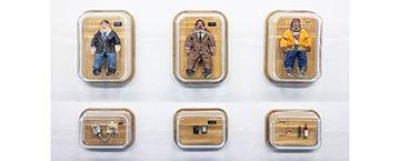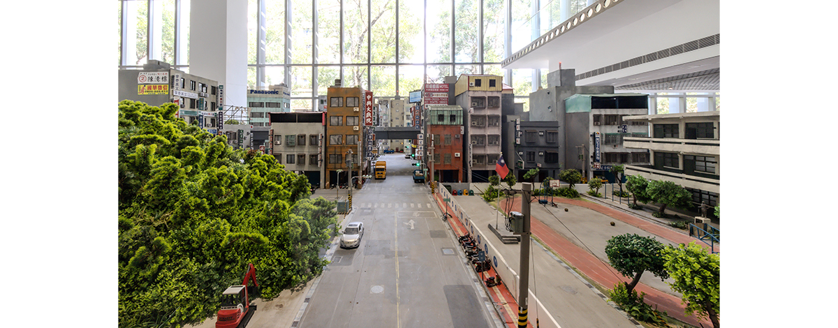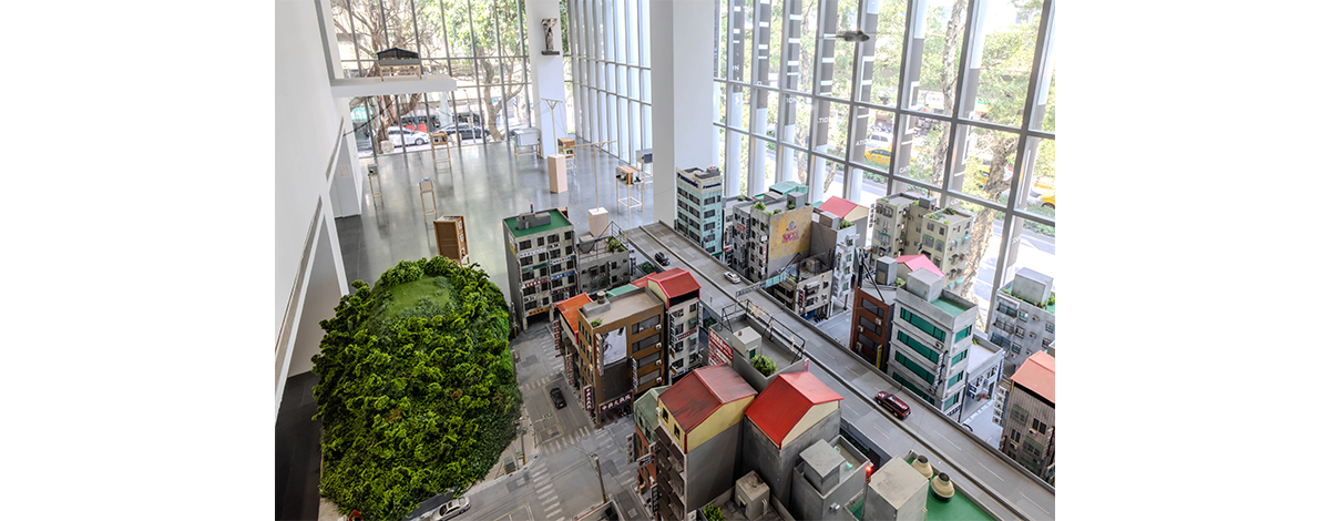 這段時日,他早已於腦中多次揣摩呈現方式,包含作品如何被觀看的動線。他認為,動線關乎身體感的轉變,當觀眾抵達展覽現場,會先被安排至地下室觀看〈戰鬥之城〉三部曲影片,在藝術家創作的影像時空中走過一場想像的旅程。看完影片後,伴隨著身體的恍惚感,觀眾踏著腳步走上二樓,每一步都是在故事與現實之間重新調適自己的時間感知,直到看到二樓落地窗外的台北街道景色,以及藝術家創作出的建築模型與鋪排開來的故事人偶、故事與現實相互拉扯的關係,觀眾對現實的感知才稍微加重。抵達三樓後,藝術家將創作的幕後攤開來,把內心過程以及這段時間的外在變化體現並置。觀者方才開始意識到這些作品背後蘊含的現實時間,它們承載著藝術家經歷的過去與當下,現實與虛構、想像與記憶在這段看展過程裡不斷交錯。