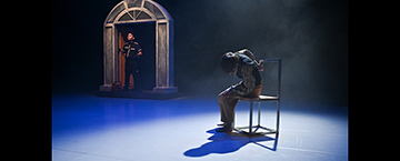 第二道命題,則是關於羅文瑾身為一個創作者,在卡夫卡作品中所看到、感受到的個人困境。「鄰居」便是對這般困境的詩意表現。羅文瑾自編自舞,分飾提筆書寫的作家,和一牆之隔的「靈感」。前面兩個篇章中的對立、競賽及鬥爭,在這裡轉為自我內在的溝通與掙扎;而原本就具有強烈象徵色彩的門,變成心靈內在一道難以跨越的檻。