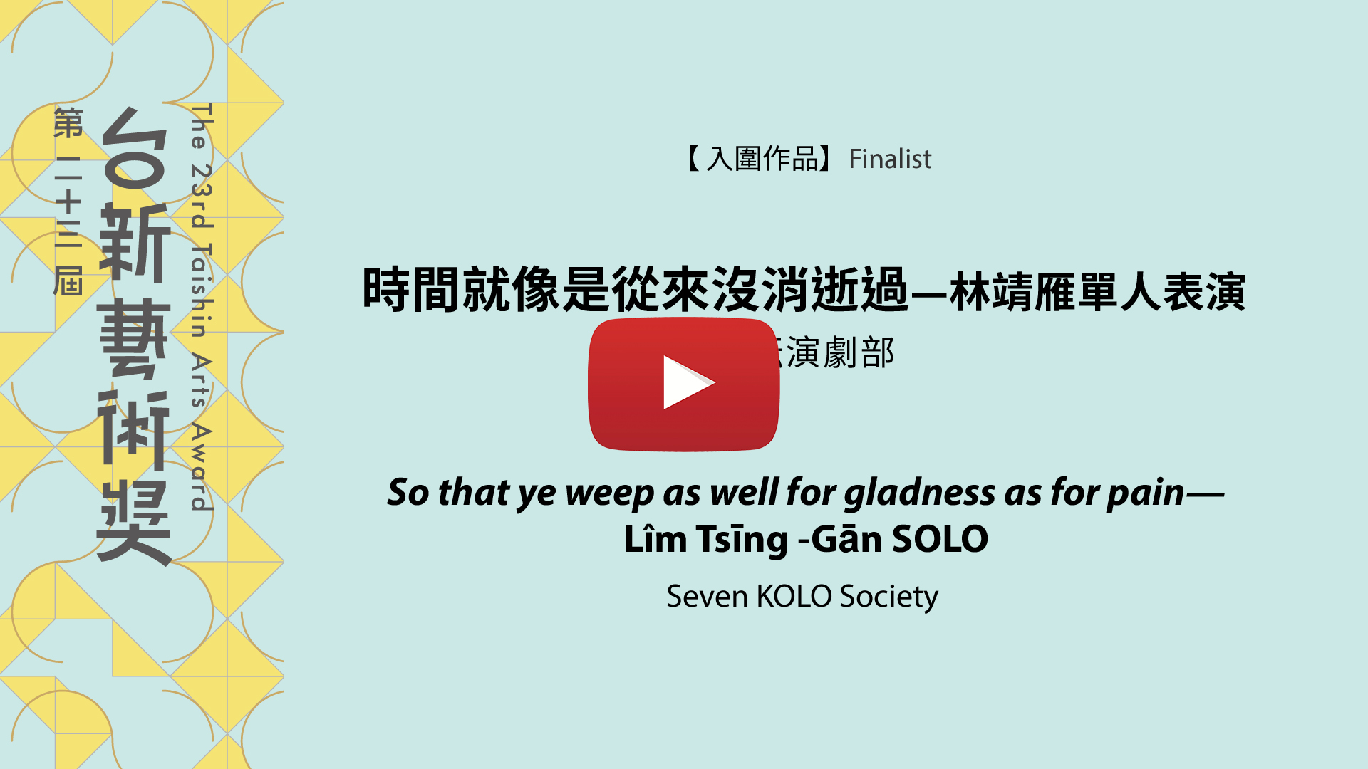 「當一切彷彿已經過去,但你仍然停留,該如何是好?」《時間就像是從來沒消逝過》是林靖雁十多年來與精神疾病糾纏之經歷出發的單人表演,作品融合私我經驗、赤裸誠懇,亦以劇場機制為手段,叩問觀眾。