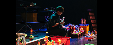 在田調過程中,團隊發現民間信仰裡,神聖與日常往往是交雜且快速切換的。所以他們不僅採集狗吠、雨滴、賭博電玩等聲音,也把玩具三牲──尖叫雞、發光小丑魚、玩偶豬──和塑膠號角等材料融入演出,在玩性中向信仰致敬。