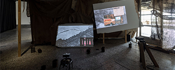 同樣都是由辛西亞.馬塞爾作品為入口引導,位於「通訊分隊」的展區內容走向卻截然不同。如果說圖書館內的作品是向外擴張,那「通訊分隊」則是向內收束成微觀的個人敘事,藝術家藉作品梳理自我與他者、主流與邊緣之間的關係。辛西亞.馬塞爾和提亞哥.馬塔.馬沙杜(Tiago Mata Machado)的〈世紀〉中拍攝著一場無人的抗爭現場,既是與前面展區的對照,也是開啟此展區的引子。隱而不宣的抗爭對應到Candy Bird的〈夜影(無題)〉,藝術家從自我和家族的政治意識矛盾發展出的無聲影像,回應了一個人被壓抑而無法發聲的狀態,但其實內心有場抗爭正發生。而本次委託何兆南的錄像〈始終如一如往常〉,和藝術家2020年拍攝香港抗爭的攝影並置,從被抹除的痕跡和話語中,藝術家的鏡頭作為一個見證者,觀眾藉此回望歷史。