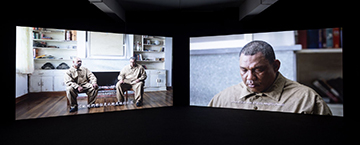 面對整體世代的紛擾與鬱悶,莊偉慈始終思考著藝術可以做什麼,特別是在有美學形式的前提下,藝術能否跟觀眾產生對話。而若前兩個展區是展開高強度且密集的對話,那位在動線結尾的米尼亞.碧亞比亞尼(Minia Biabiany)作品〈在夜裡的無盡凝視〉,則扮演了治癒的角色。縱使該作的故事在於探討瓜地洛普(Guadeloupe)這個長年遭受殖民與奴隸制對待的土地,但藝術家詩意的語言與緩慢的節奏,以及私密的展場設計,能夠讓觀眾激動的心靈慢慢地平緩。