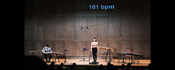 國家兩廳院的演奏廳內,箏樂獨奏會開場。舞台上三架古箏高低一字排開,理應迎來身著正裝的演奏家,未料,一男一女慢跑入場,鬆散地開始在台上伸展肢體、拉筋開髖。隨後兩人一站一坐,演奏者郭靖沐對應著女子的動作,在古箏絃上模擬出肢體表演的聲響:身體的擺動聲、關節的喀吱聲、拉鍊開闔的金屬嚓嚓。舞台上再加入肢體表演者的投影,跑步即時電聲與心跳頻率的疊加,一拍一拍,即時被轉譯為古箏的聲響演出。