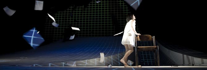 而在語言的實驗方面,周曼農更進一步擺脫敘事性的文體,以大量詩語式獨白,直接切入創作者和作品、創作者和自我的關係。除了詩語與日常性語言的使用外,更嘗試雜揉其他類型的語言〈呢喃、兒語…〉。演員運用不同的聲音質地和節奏形式(如歌唱、低吟、呢喃…),讓語音和語義雙重交響;此外,麥克風也在本戲中成為重要元素,聲音透過機械的虛擬、擴大、回溯,產生如噪音般的壓迫感。「我希望語言要有力量,像刀子、像電擊、像火一般炙熱,一句句地撞擊觀眾!」周曼農說。