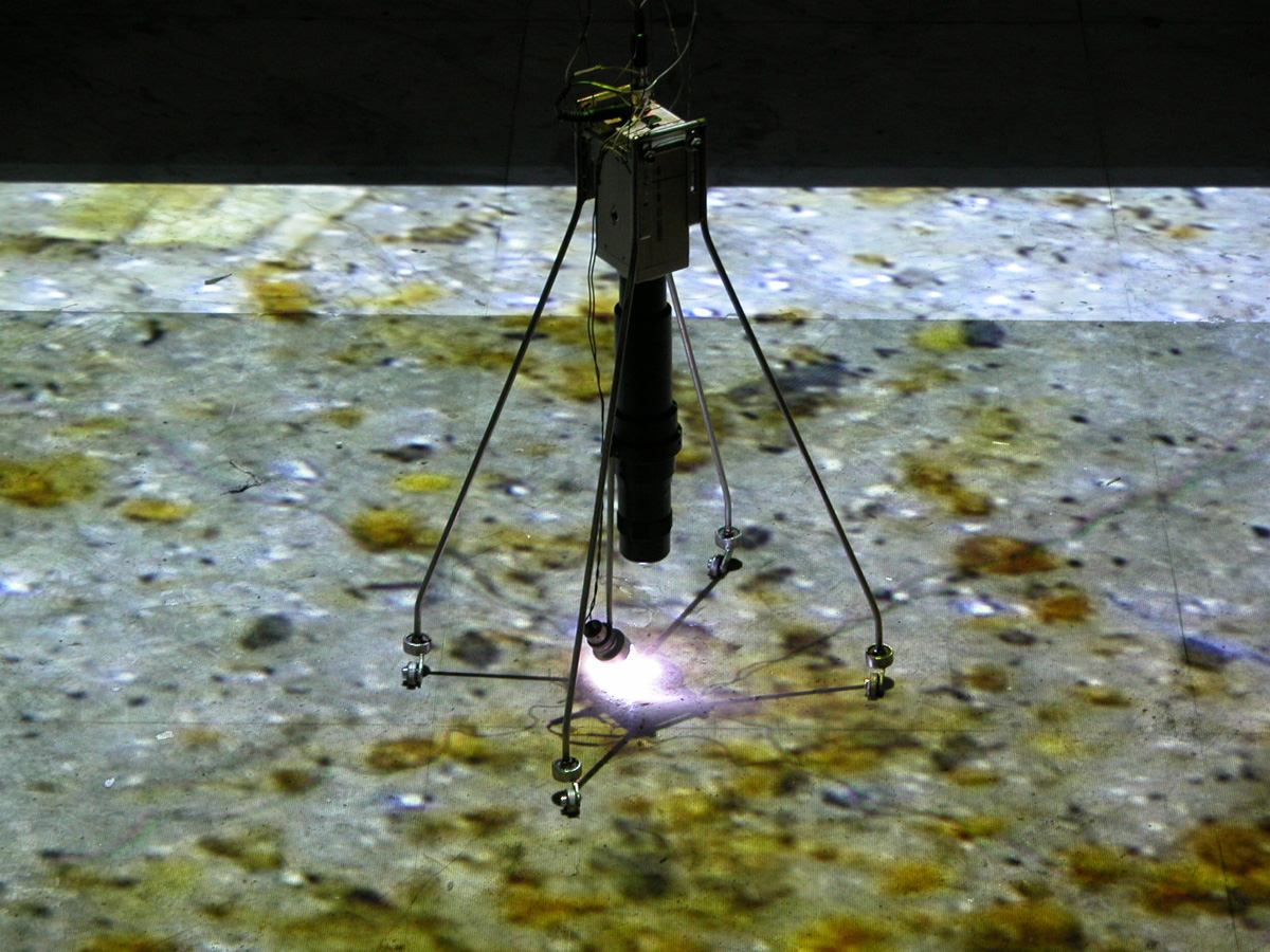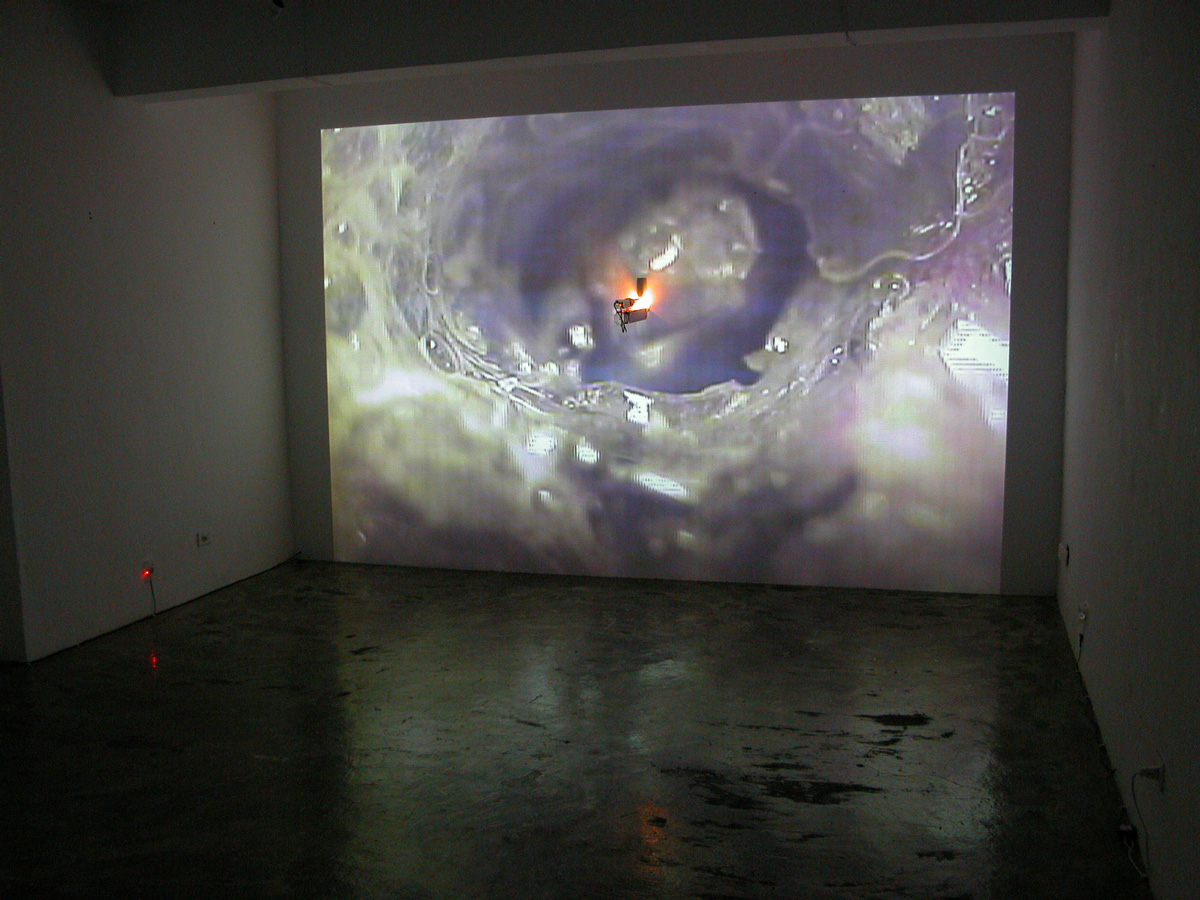 In 2003, Tao Ya-Lun held an exhibition entitled Consciousness in Vacuum at the IT Park in Taipei. This exhibition aims to duly depict this ambiguous relationship. Consciousness in vacuum is a mental state one reaches through meditation in the East. Terms such as “concentration” or “samadhi” express the deep and tranquil mental state. To reach this kind of mental state, one has to meditate. However, if the meditating person or the meditating methods are replaced by or interfered by technology, what kind of state will one reach? That is this experimental question Tao Ya-Lun wants to pose in his exhibition.(by LIN Chi-Ming)
