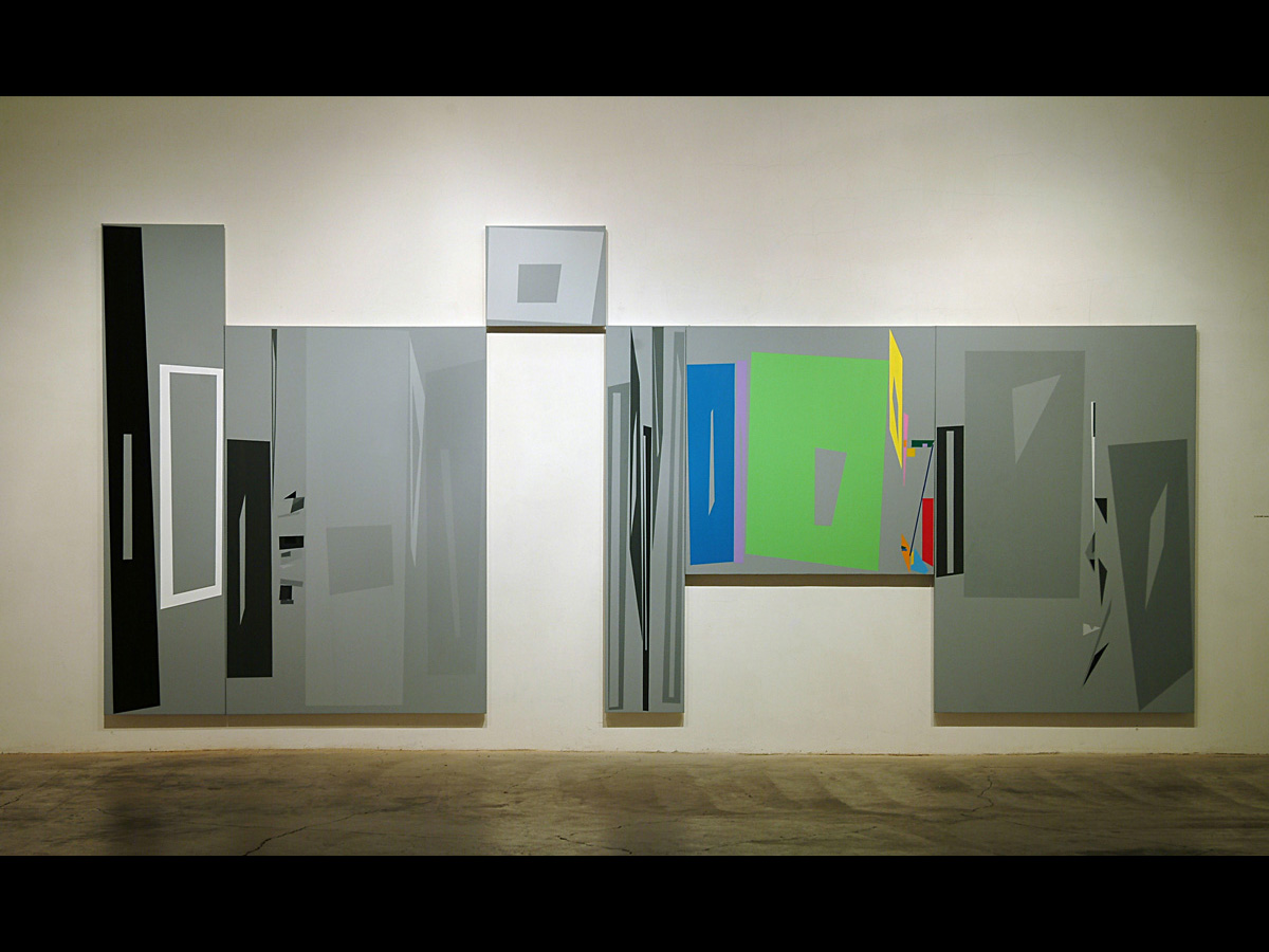 The multi-dimensional and dynamic arrangements on the flat surface of the canvas may help us to understand the synergy generated from the combination of time, space and energy. The first impression of Hu’s arrangement of geometric shapes is the sense of being neat but volatile, and soon its underlying sensation seems to stretch towards all directions, transmits its energy to each corner and then permeates in a 2D, 3D or multiple dimensional space or time.