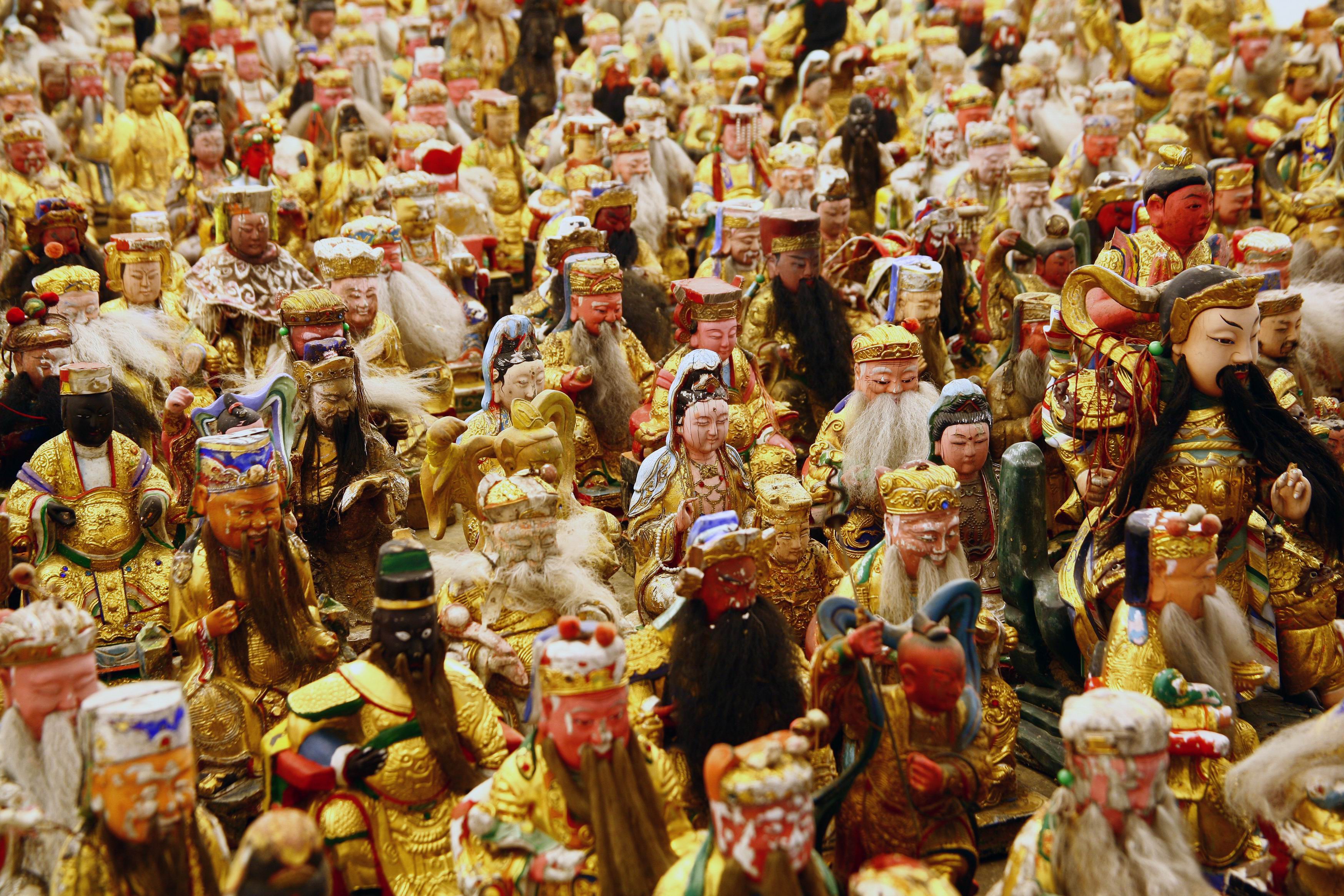 Peng Hung-Chih creates a multi-media exhibition that combines video and found objects to question idolatry in secular religions, and the relationship between technology and humanity. Beware of GOD embodies the neo-figurative language of contemporary art today, Peng uses humor through the manipulation between the symbol of God and a domestic dog. The installation critiques the common desire for material wealth through the juxtaposition of the ancient and the new, the digital and craft, and the text and the image. Beware of GOD contributes to a global dialogue about existence in the age of merging cultural identities.