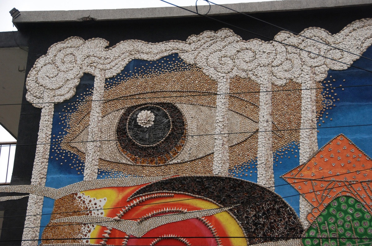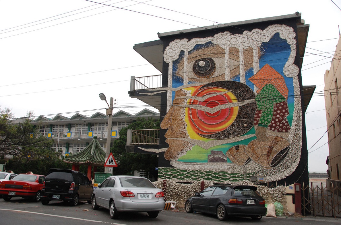 Hsu Hsiu-yun's “The Sea of Hope:Oyster and Seashell Mural with Community Participants” was completed July 2007 in YunLin County, Taisi Township. Over a six month period, Hsu organized artists, students, residents whose livelihood is the sea, and environmental groups. Part public art project, the mural is a social activist work to speak out against impoverishment and of the Taisi community.