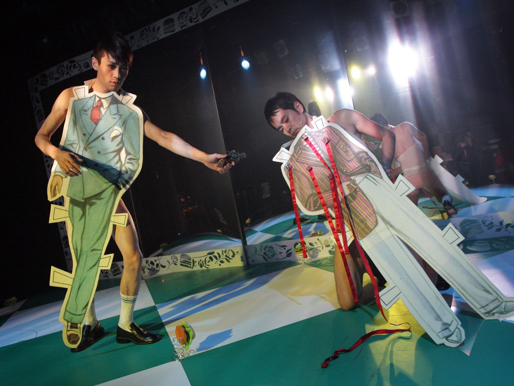 Rhyming four-character sayings and clichéd pattern sentences has turned the speech that originally structured human relationships into a dead language. Cutout paper figures on the stage act out a passionate soap opera of destruction. The metaphor of Dollhouse is no longer sufficient to reflect the condition of the recent hysteria of Taiwanese life. Here, the writer has used the world of toys and games to construct a flattened out Taipei-style life of the stage, which poignantly reveals the falseness of the world of appearances and the unredeemable loneliness of real life. Here, "people" don't "speak words," instead "words speak people." It's for this reason that "Listen to Me Please" is able to echo the pitiful cries of people who have nothing to say. Committee member: Yu-Pin LIN