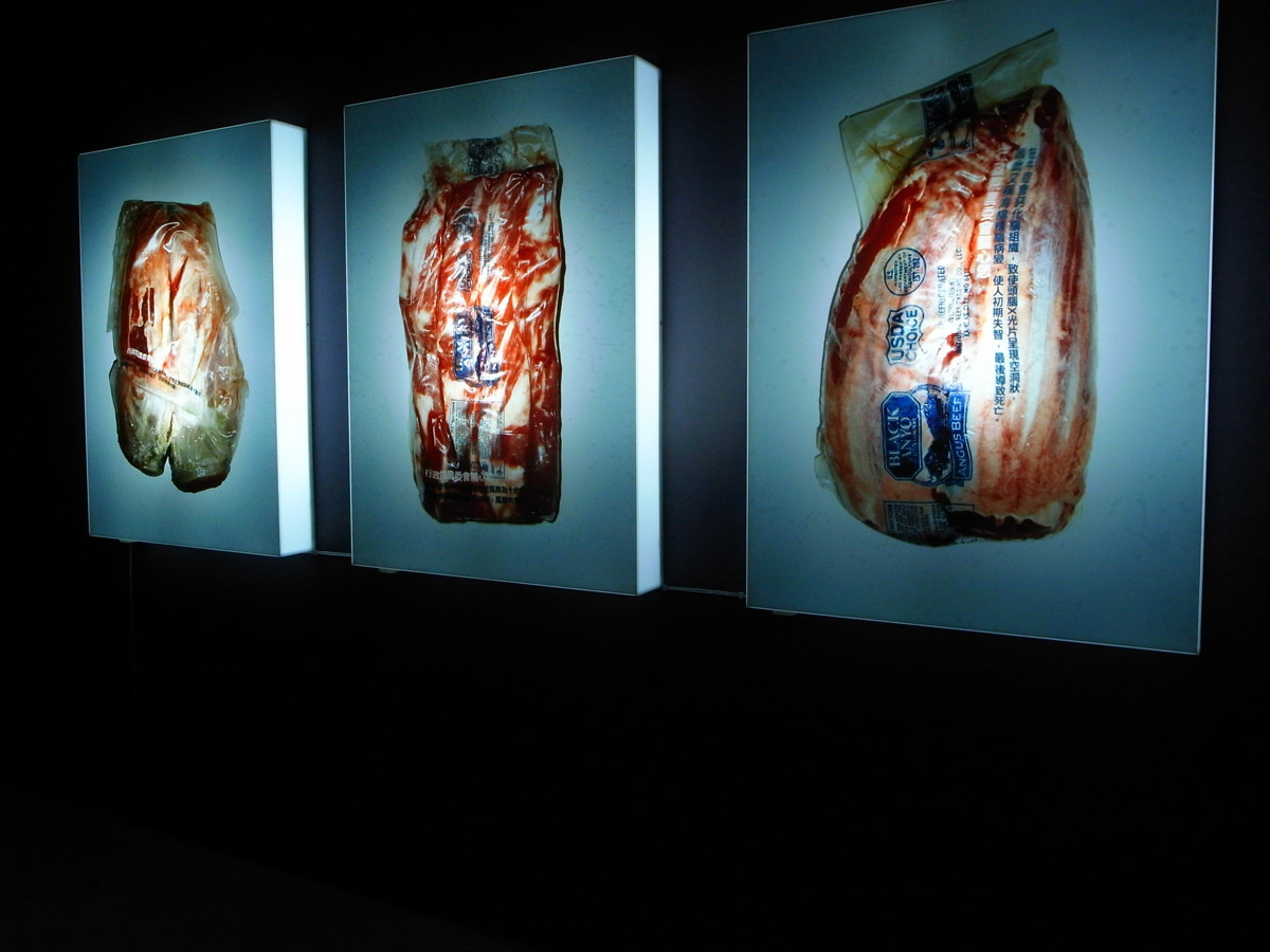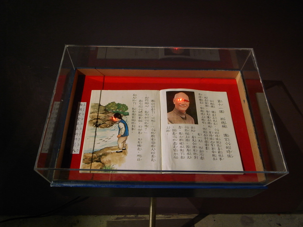 In works such as PTB’s series of hidden cameras and camouflage gadgets and Dawuyong Tizhi’s [Of Great Useless Constitution] I’m Not Guilty serve as a kind of infiltration into the omniscient social surveillance that monitors us all the time. Shin, Yi-Shan’s Stow Away, Huang, Po-Chih and Huang, Chien-Yu and Tsou, Yi-Ping’s collaboration of “B! Poetry (Be Poetry, Poetry to Beep)” along with Liu, Hsin-Cheng’s pseudo-American beef advertisement can all be seen as ironic acts that comment on consumption activities in the local or global context. Puta Yeah’s Education Is No Waiting makes a humorous parody of the once-standardized textbooks used to serve as militarist propaganda of the past.