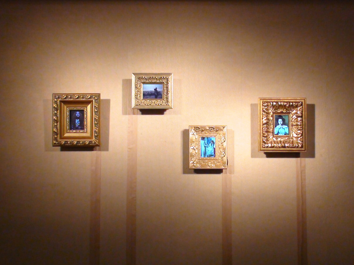 A small monitor placed in a picture frame showed a computer animation (2008-2009) that was derived from a Japanese baseball-guessing game and which allows for the audience to relive the classical experience of looking at the image of beauty from famous Western paintings. Music and animation could also be downloaded via Bluetooth onto the viewers’ personal cell phones. In Chang’s digital videos, he makes the ambiguous connection between live weapons of war and violence in computer games.