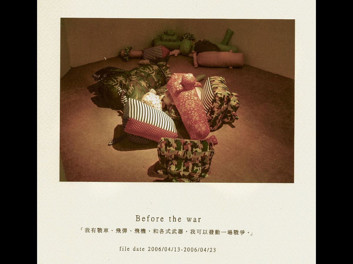 Three years ago, Chang exhibited his handmade cotton pillows with decorative patterns that were shaped like tanks, rockets and various other weapons to show the ridiculousness of war. However, during that exhibition, he realized his work did not lead to further discussion, so he sold it all and donated all the profits to support a little Bosnian girl named Irdina.