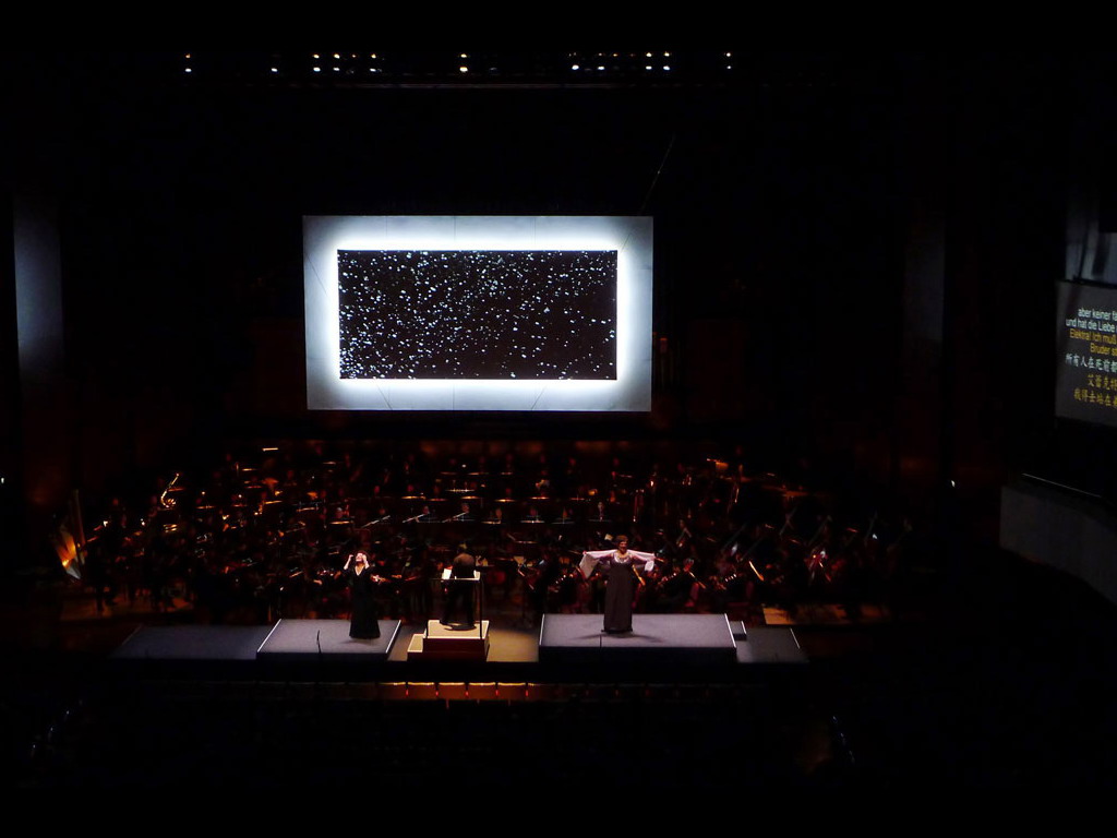 A platform was located in front of the stage so that the solo singer was closer to the audience. The orchestra was seated at the far back end of the venue, so that the orchestra, singer, and conductor were perfectly positioned. Lu, Shao-Chia, the conductor, brought out the greatest potential and coherence from the performers, and balanced the powerful sound of the orchestra and the singer. Lu was able to present the intricate layer of the complex music and gain acclaim from audiences. The uninterrupted 100-minute performance is not merely a premiere; it is a new milestone for the orchestra and Taiwan’s music circle. Committee member: Li, Qiu-Mei