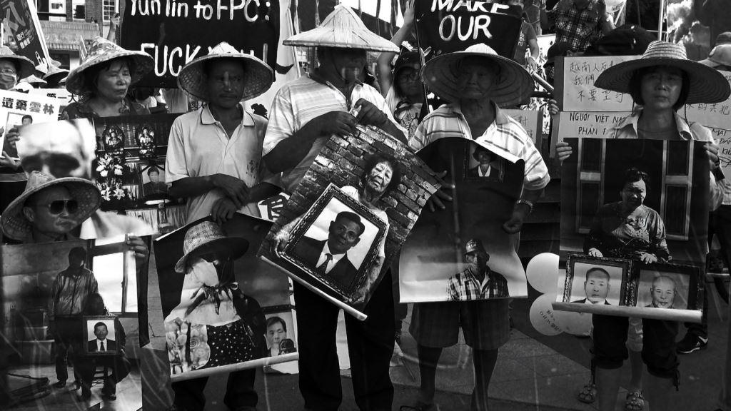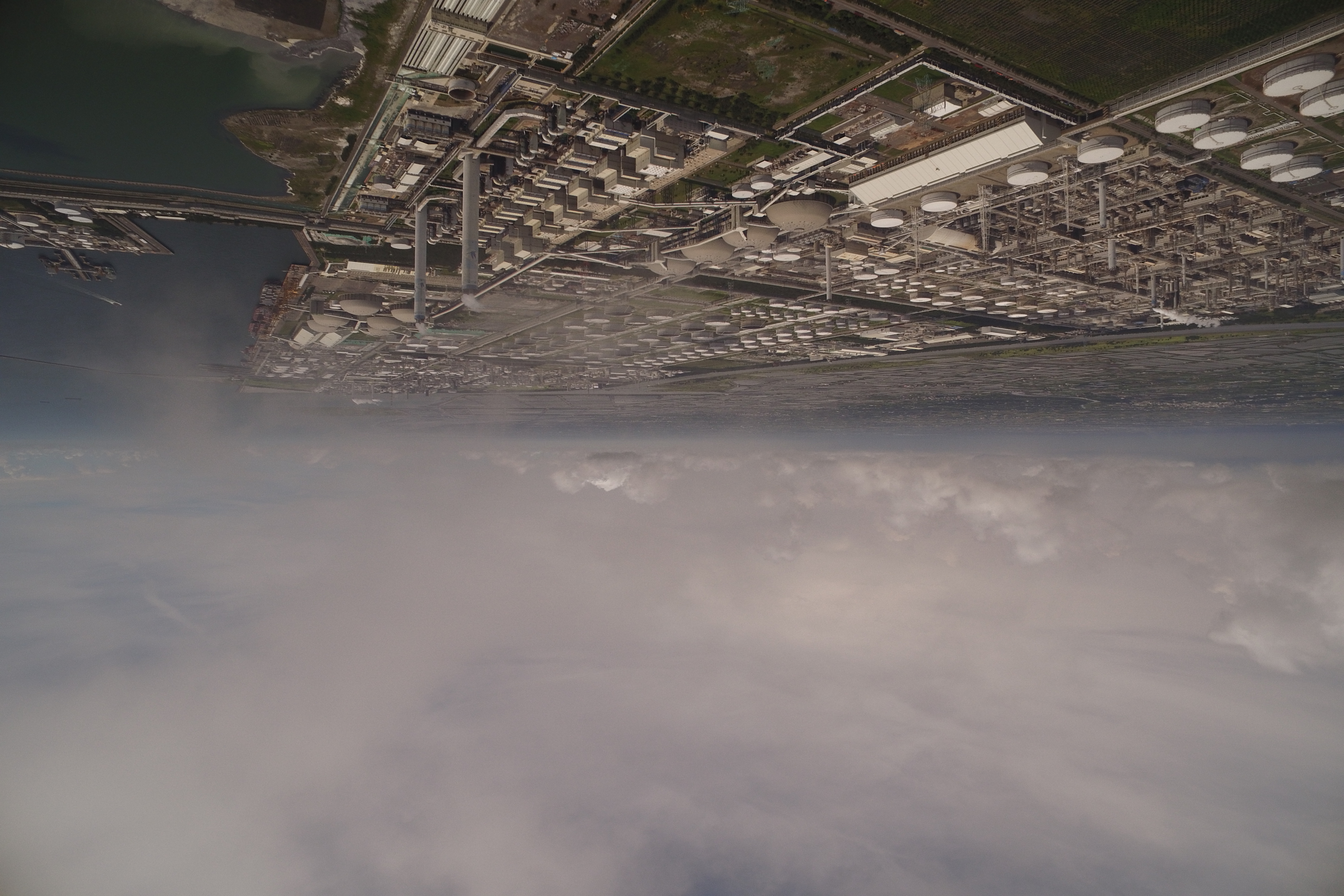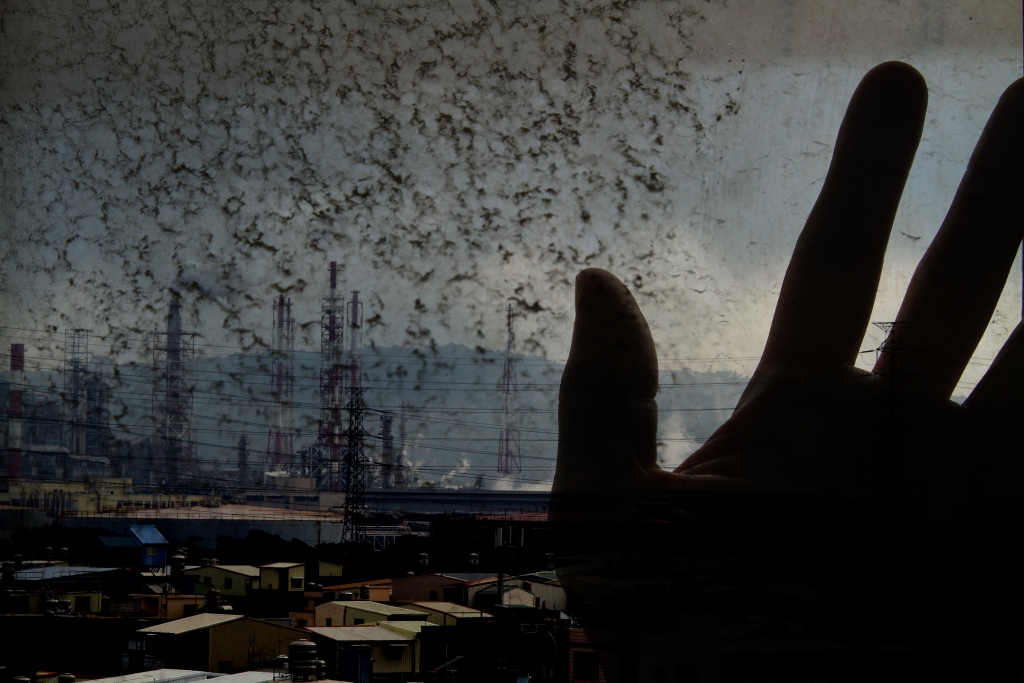 This “anti-aesthetic” art exhibition is also an exhibition of air pollution, and may be regarded as a promotional exhibition on environmental protection, or an exhibition of images of environmental protest. LIN Tay-Jou references and extends the petrochemical industry jargon for the refining “cracking” process in his work with the implication that the petrochemical industry has qualitatively altered the environment and human beings and caused it to fissure and fragment. Confrontations and the breakdown of communications between the victims versus government and industry are physical expressions of the nature of this polarization, conflict, and contradiction. The artist’s practice of split edits in the film responds to the Collision Montage suggested by Russian director Sergei Eisenstein – constructing a new concept and significance by juxtaposing two disparate images, while also presenting the film grammar of the Third Cinema (social activism film), using a dialectical system of jumps, breaks and irrationality to “split process images within a documented event”.