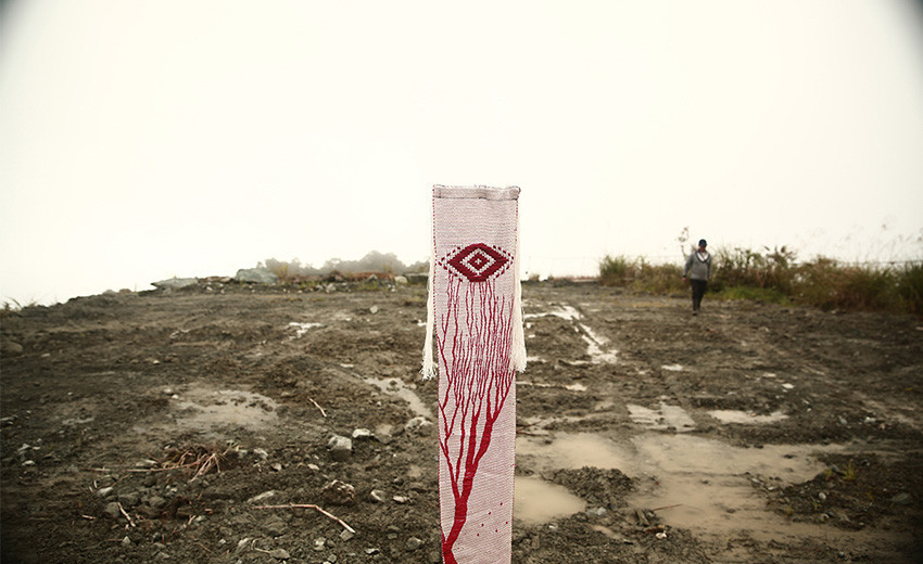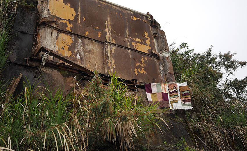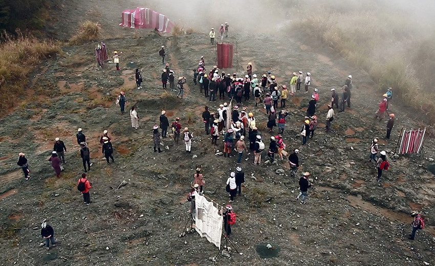 Weaving textile and a mining area form a dialectic between softness and solidness, whereas modern wounds of mountains are revealed to be gazed at and listened to through weaving techniques and patterns, as well as the bumpiness and clanking sounds made by the small trucks traveling into the mountains. Artist-curator LIN Gieh-Wen gathers her friends to unfurl a creative, collective scene of “co-creation through weaving.” The participating weavers transform diasporic and hybrid experiences into a raw momentum and fresh language, wrapping the mountains as well as wounds of wars and relocations from the past with the healing power emerging from group efforts and mutual learning. Perhaps, the two-dimensional patterns recorded by the textiles hanging on rock formations and cliff faces are pointing to a pathway leading towards the future. (Commentator/WU Sih-Fong)