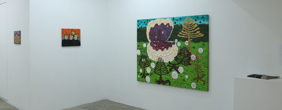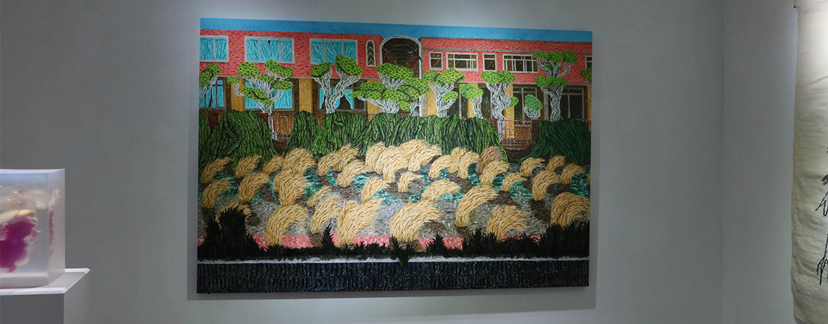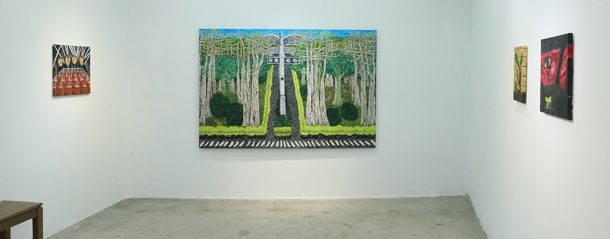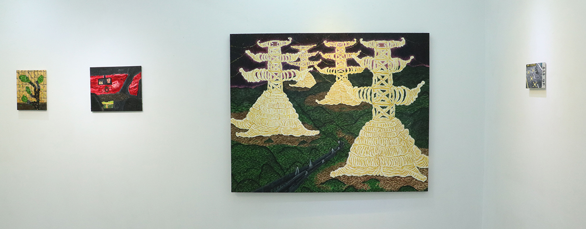 The artist proposes a unique perspective of viewing contemporary life through painting, which delineates a personal sense of place, characteristic of the internet generation and mapped through the use of cellphones and by one’s feet, conveying feelings through scenes in a highly idiosyncratic style. The dense brushstrokes and filled images further increase the tension of the paintings and give meanings to ordinary, insignificant sceneries, treating them as personal landmarks. Through painting, the artist highlights the fact that the universal and conceptual quality of maps is no longer emphasized in this era. Instead, maps are embedded with divergent meanings created by individuals. These images, connecting places and body relations, are mixed with fantasies and transfigurations, transforming long periods of private time with these locations into sensory memories that are more lasting than simply taking check-in pictures. (Commentator: CHANG Ching-Wen)