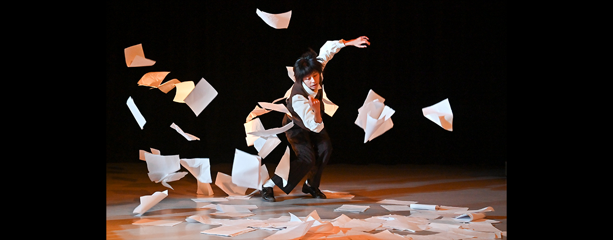 Choreographer LUO Wen-Jinn and dramaturg CHEN Hung-Chun’s collaboration, That’s Possible, But Not Now, draws inspiration from Franz Kafka’s short stories. The production unfolds through three interconnected scenes, translating the absurdities and contradictions depicted by Kafka into the creative anxieties and internal conflicts faced by artists. The narrative develops as the scenes shift between the front of a doctor’s office, the courthouse, and an apartment door, delving into the creator’s examination of social injustice and the meaning of one’s life. A large movable door on stage adds subtle symbolic depth to the piece. The dance cleverly incorporates elements of mime into physical expressions, effectively delivering a satirical commentary on human nature through superb dance skills and humorous portrayals of characters. (Commentator: CHEN Pin-Hsiu)