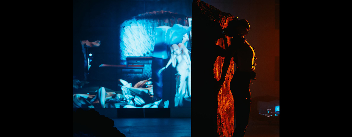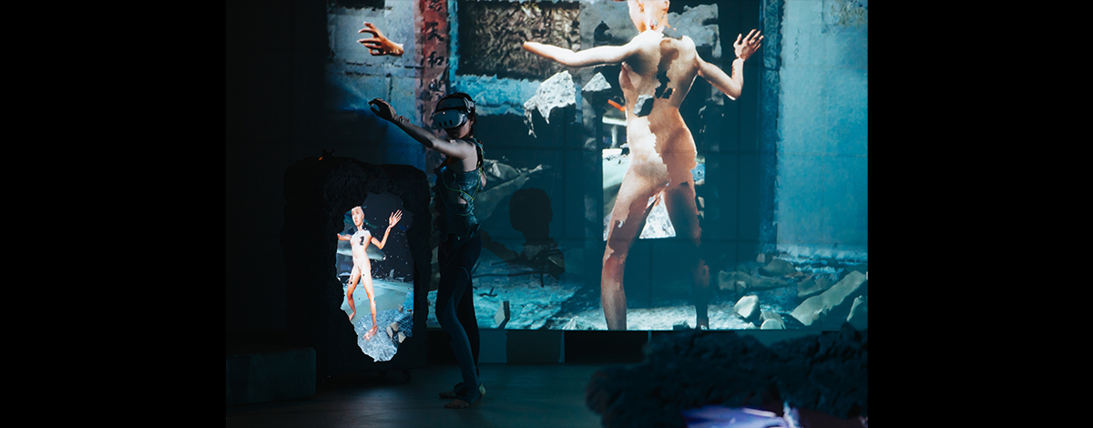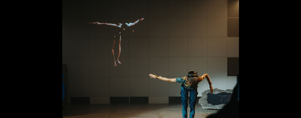 Beyond simply demonstrating how virtual reality serves as a means to explore memory and visions of the future, KINGDOM employs 3D digital space, images from VR headsets, and the shared space between audience and performers to transport everyone into a meticulously choreographed memory space characterized by a never-ending process of compression and decompression through shifting viewpoints and the design of a seemingly infinite stage, floating in a (private) digital kingdom that is constantly collapsing and being reconstructed. This work relies heavily on the performing team’s high level of coordination, with live sound and visual effects precisely synchronized with the performers’ onstage states. Meanwhile, performers wearing headsets need to enhance their sensory engagement to respond to live audiovisual cues. This exemplifies the fruit of their longstanding collaboration. (Commentator / CHEN Hsiang-Wen)