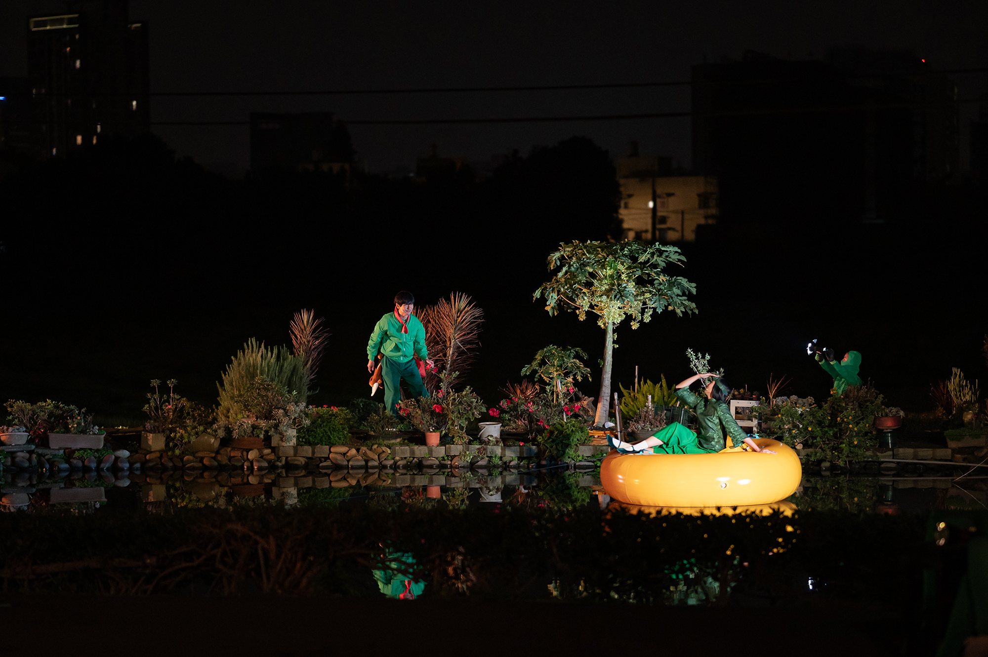 The Performing Arts Award was presented to Great-Grand Rat-Po-Tai (So Old) Is Sleeping Next To A Landscape Painting, Diligently & Stingily Snoring——But There Is No Landscape Painting! Created by director-playwright HSU Peng, the production, which features flowers that bloom on the dead end, was staged in the century-old ancestral home of the Hsu family located in Guoling, Zhongli. It intricately weaves a magical realist narrative revolving around the lives of the women in the family. Hsu transforms mundane domestic trivialities and snippets into a richly layered theatrical text through “sui sui nian” (碎碎唸), a recitation style based on murmuring, along with a meandering performative style, skillfully merging the surrounding environment with the narrative. Utilizing witty, sharp, and surreal imagination, the piece emerges as a critique of patriarchal norms articulated from a distinct perspective informed by female poetics.
