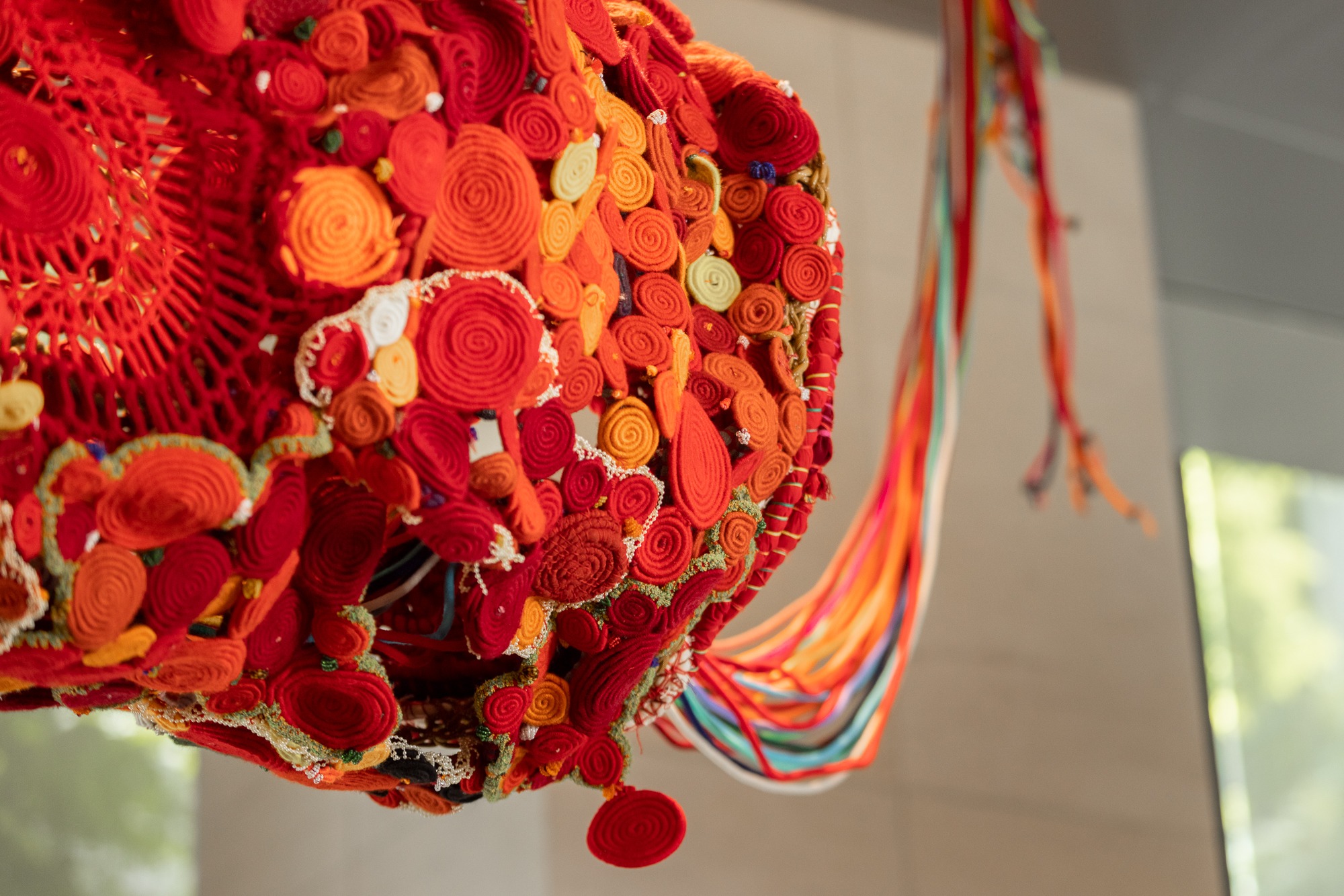Aruwai Kaumaka, born in Davalan in Taiwan’s Pingtung County, Paiwan artist Aruwai Kaumaka is the “mazazangilan” (meaning “child of the sun” in the Paiwan language, and commonly translated as “chieftain”). Her art practice engages in weaving, craft design, and jewelry design. In recent years, she has gradually shifted towards soft sculpture and installation art. Her work nurtures a fundamental self-narratives of the female sex: women are independent individuals, but they also form an indispensable center to bring people closer in terms of community and inheritance. Therefore, Aruwai Kaumaka’s art represents her way of microcosmically approaching and observing women’s rhythm of life, while dialectically reflecting on the topic of the female consciousness. The imagery in her early works mostly feature a sense of blossoming splendor and nobleness. However, since the Typhoon Morakot in 2009, which forced her people to relocate, her work has turned to a deeper inner realm, hoping to cohere and coalesce her community to find the power for moving forward.