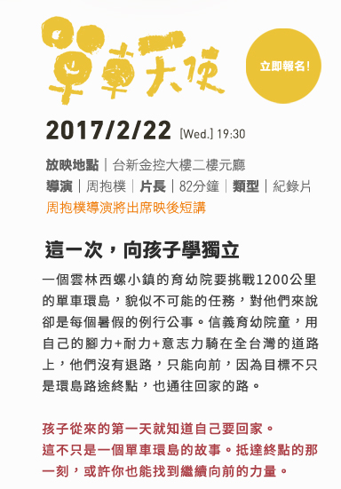 *於電影放映完畢後,將各邀請導演周抱樸、陳潔瑤進行映後短講。機會難得,敬請把握!