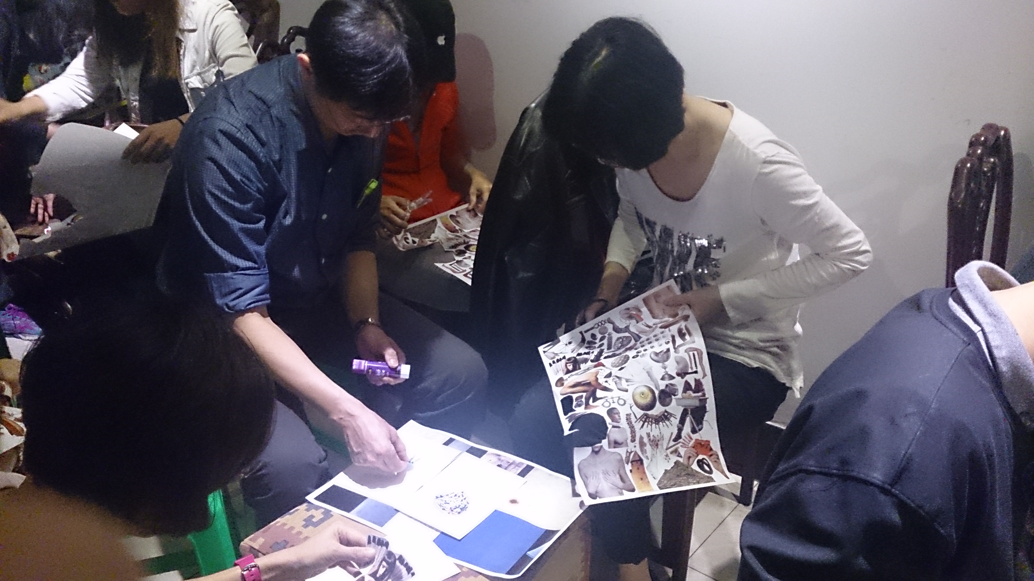 而記憶拼貼,則是剪紙拼貼,只是所給的「素材」圖片都是我不喜歡的類型,讓我還是勉為其難的做了兩個拼貼。唯一心得是,我的拼貼作品洩漏了我的生命態度,看看周遭同事的作品都是乾乾淨淨,簡簡單單,整整齊齊,圖片使用很少,留白很多;但我的拼貼幾乎都是滿版設計。看來,我把生命也「充填」的太豐富了吧!
