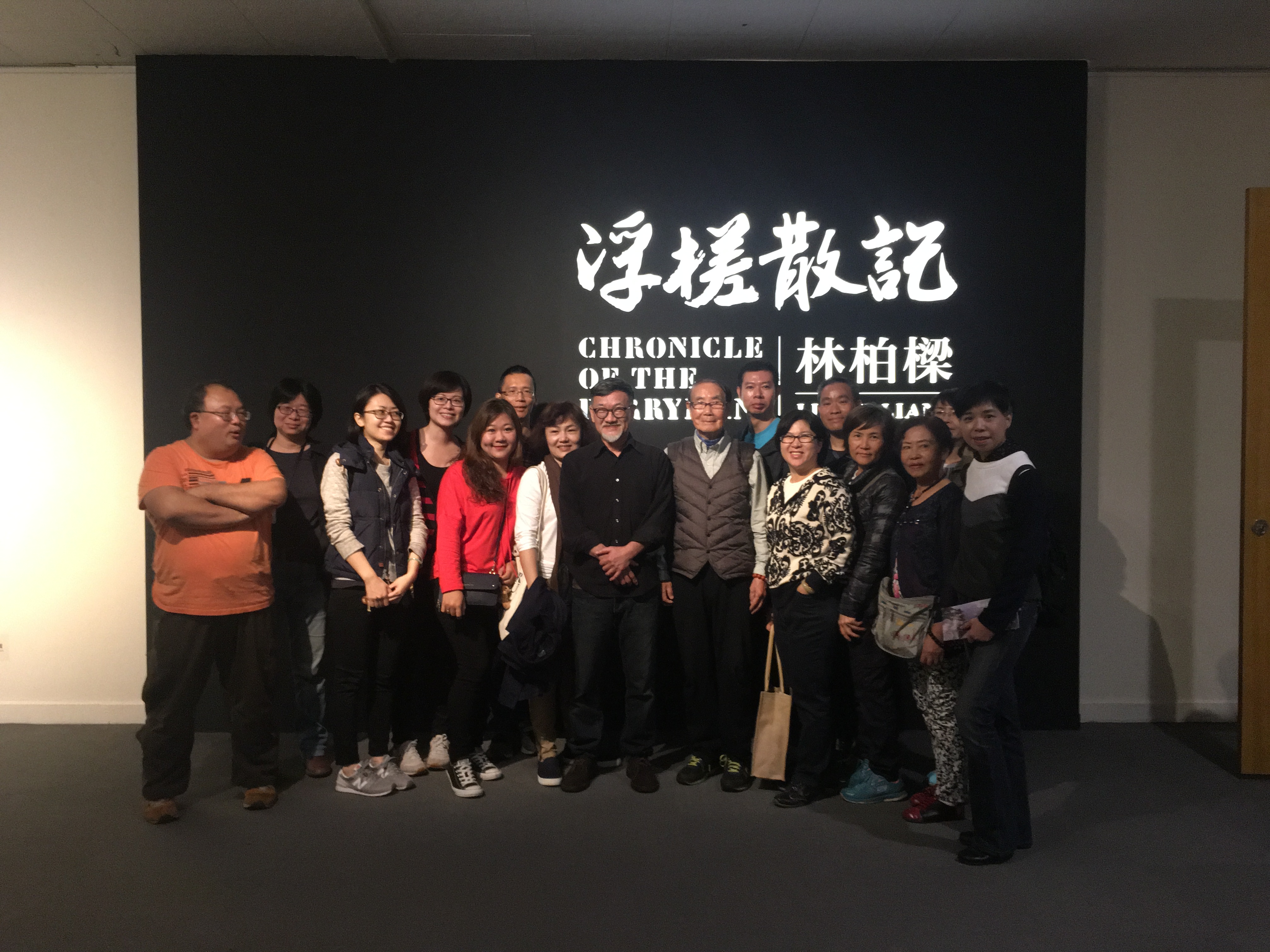 圖說:同仁們與藝術家林柏樑(中)、策展人陳伯義(左一)於導覽後合照。