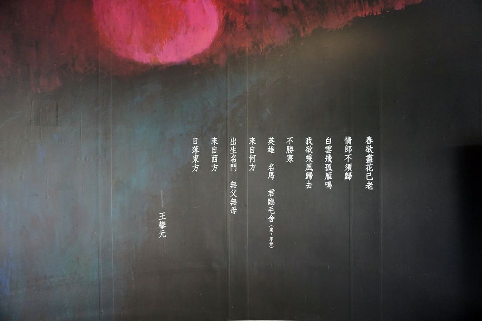 「過盡千帆——王攀元繪畫藝術」展場入口的長牆上寫著王攀元老師自題詩文,「春盡花已老,情郎不須歸,白雲飛孤雁鳴,我欲乘風歸去,不勝寒。英雄名馬,君臨毛舍,來自何方,出身名門,無父無母,來自西方,日落東方」。彷彿是他一生寫照,引領好奇的我們走進了他孤寂絕美的心靈世界,與他神交於台灣歷史博物館。