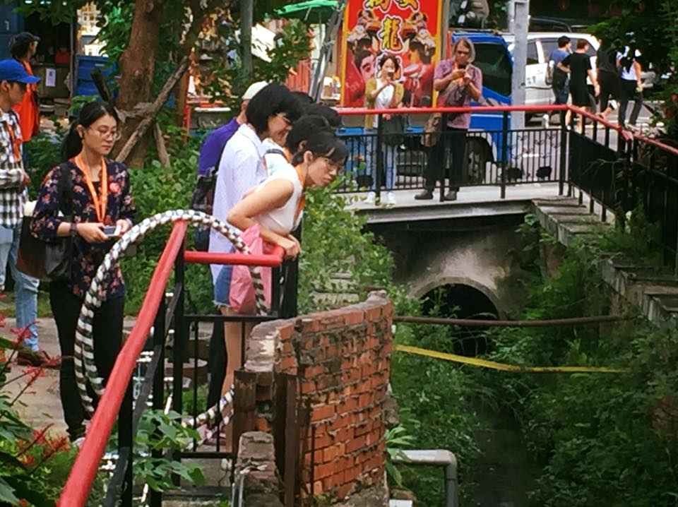 又來「超親愛小戲節」,上周去「艋舺」(龍山寺),本周來「加蚋仔」(南萬華)。這次集合地點選在「東園國小」對面的保德公園,第一站是《穿梭水路的聲景記憶》,由教育廣播電台《自然筆記》主持人范欽慧用語音導覽,帶大家漫步走東園街,接長泰街,繞萬大路,最後到寶興街,沿途介紹周遭環境、並踏查已遭掩蓋的昔日沼澤水路。