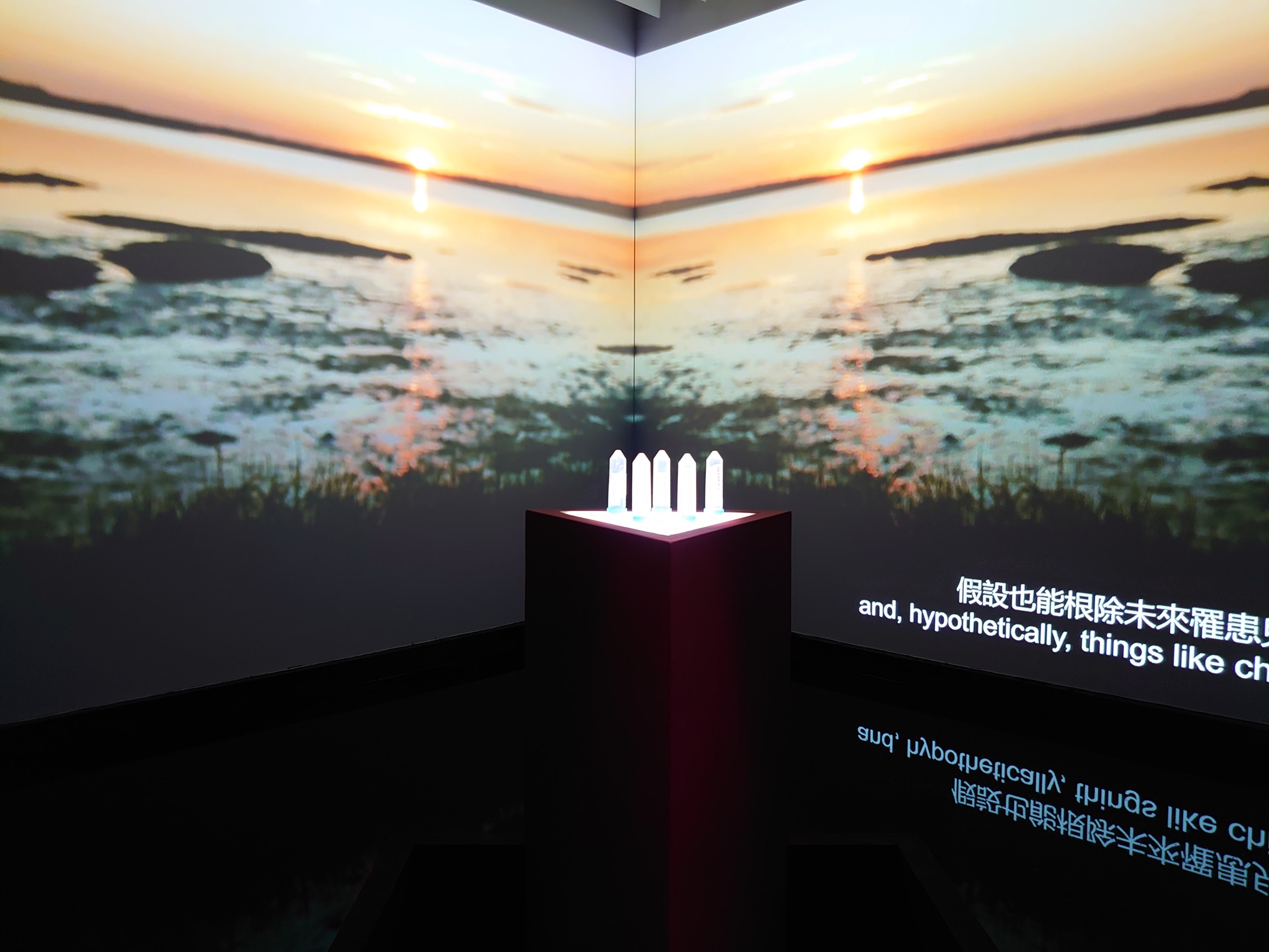 展覽中提供許多已實現的事件整理以及架空幻想的未來,作品中我特別喜歡英國藝術家夏洛特.賈維斯(Charlotte Jarvis)的作品《可能》。這是透過使用幹細胞技術製造女性精液、且持續進行中的藝術計畫。聽起來很驚世駭俗,不過站在紀錄影片前達數十分鐘的我,在了解藝術家及伙伴們的論述,可以理解酷兒行動與精神,藉由生物科技在父權社會進行生物定義的概念性衝撞,在極富詩意的影像,搭配結合社會學及生物科技學的旁白內容,反思了許多原本習以為常的概念。