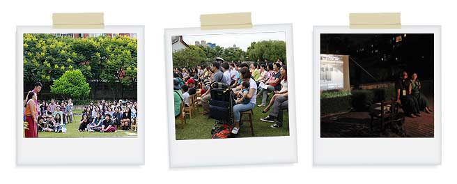 在市區晃了一下,這蘆洲李宅我是去過的。台灣義勇軍李友邦將軍和江浙美人嚴秀峰女士的愛情故事雖然淒美但是知者不多,因為白色恐怖的烙印讓這裡蒙上神秘面紗,一走出略小的門面,整個廣大的園區向我迎了過來”哇!在市區內居然還有這樣子的世外桃源,廣大的湖面隨著白雲的流動,映照著百年古厝的餘暉,而工作人員親切的招呼讓台新的員工馬上有”在地人”罩的安適感。事實上,這次的表演團體也是享譽盛名的,主要的演員個個都有一番好身手。”十牛圖”主要是表達人生在這短暫的光陰中能有什麼樣的體悟,其中還有穿插李將軍與嚴女士的生命故事。在後段表演團體利用李宅龐大的建物分區進行表演,有行動劇,原民音樂,甚至有蒙古喉音。而在夜色漸出,湖畔的柳樹下,表演者撼動人心的打鼓表演和嘆為觀止的沙畫絕技更是讓人意猶未竟。
