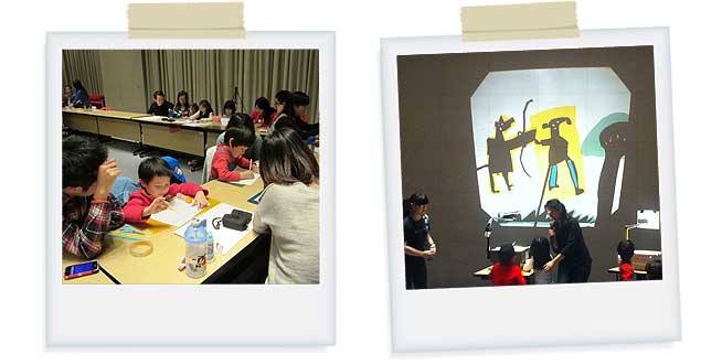星期六,天氣晴,難得好天氣。整個上午Diego一直在問是不是要出發了?因為下午要參加「光影小紅帽」的課程。終於,到了會場Diego就開始「張來瘋」,非常興奮地東張西望,有點控制不住-還好老師來了。