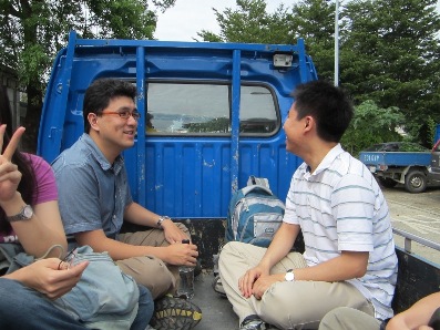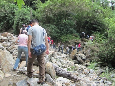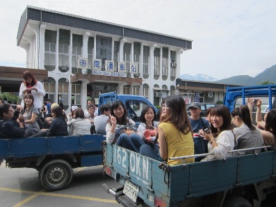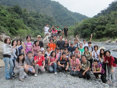 下午的行程令人難忘,我們分乘五部發財車挺進被颱風打壞的南澳步道。因為路途蜿蜒難行,一部發財車拋錨,車上的人分配到其他車後讓大家擠的不得了,但也更有戰鬥氣息了!看著腳邊的山坡,奔馳的戰車真讓大家血脈噴張! 到了古道入口,沒想到這次要玩真的! 大量的土石溢流到河谷,而我們要從中下降!真是太操了!!但是沒有一個人抱怨,果然大家都是志願役的,看到一個個排隊的同仁在面對陡峭的崩地卻大義凜然的向下跳去,我聯想到玩大怒神前的顫抖! 為了面子也只好衝了!在半途的岩壁上,看著腳下滾落的石塊和已經到達河谷的戰友快樂的泡著溪水。我幹嘛要來這裡虐待自己啊!幾分鐘後我也泡著清涼的溪水看著風景,這一切都太值得啦!早上六點就起床的疲憊,我到晚上卻還精神奕奕,這次的旅程真的要感謝基金會和韋老師、曹老師、永光大哥的保護,另外也要感謝林老師默默的守護我們,才能安全的從南澳古道成功回來!謝謝大家!!也謝謝我鐵腿的後兩天!