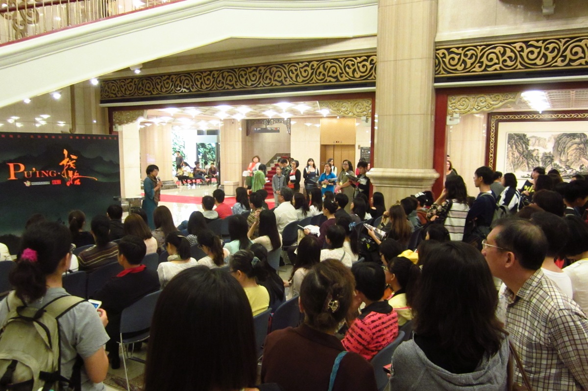 「Pu’ing‧找路」是以泰雅族母語表演,表演者唱出多首歌謠並結合傳統與現代的舞蹈,帶出泰雅族的風情與故事,比較特別的是,整個表演不是一直用講話的方式來講故事,而是藉由表演者的肢體動作與演唱的歌謠帶出想表達的意念。讓我深深感動的一段是,男舞者依指令不停地做伏地挺身、拍合跳、折返跑等動作,直到後來群起激憤一起對抗日本的情結,讓我的心情糾結在一起,除了回想到歷史的過去,也對台上的表演者揮汗如雨的演出感到敬佩,我想全場的觀眾也被感動了,所以結束前每位觀眾都給予熱烈的掌聲與歡呼,甚至也紛紛起立向表演者致敬。