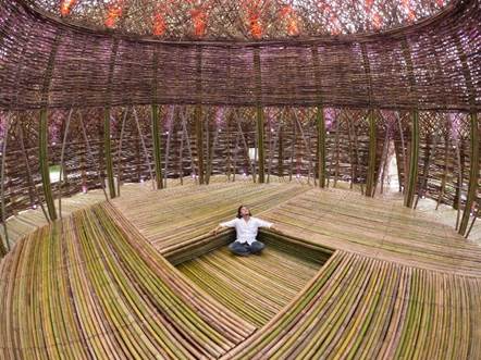 在忙碌的現代生活,人在尋找一個讓人心靈可以得到安歇的地方,看著他編織的竹屋,就可以感受到言語無法形容的安靜與力量,若是親身進入作品裡,一定更有「哇」的感受!我想,家就是讓人可以重新得力、再出發的地方。