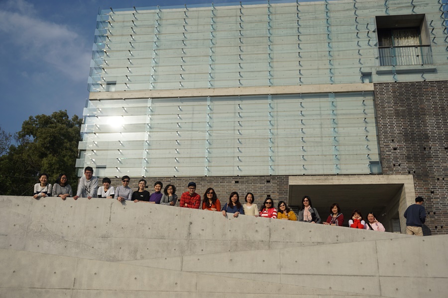 這不是我第一次參加「台新員工藝文課程」,而是第一次拋夫棄子搭上巴士。當藝術總監問道:「心情如何?」時,我小聲回了一個字:「爽」終於有專屬我整天自己的時間可以打開全身細胞,專注吸收美的能量及養份,實在是難以言與心中的興奮! 連日的「霉」雨被我們一行人的期待一掃而空,但無預期地遇到清明祭祖的車潮。原定AM:09:30抵達,到台中已將近中午。用完藝術基金會滿滿誠意的大餐(真的!每次都吃的好滿足!!)後我們帶著沒被車潮沖散的興致,抵達亞洲大學現代美術館,開始與安藤忠雄發生「三角關係」。