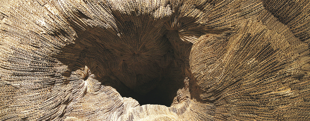 在這個展覽中,以術家以工業瓦楞紙板為材料,從自然中尋取靈感,雕切出小巧可愛的擬仙人掌盆景,蜂巢蟻穴的壁面裝飾,或石岩洞般可讓人進入體驗的通道,巧妙地從單一材料中,開發出了堅硬、柔軟、粗糙、細膩等不同觸覺與機裡的造型與空間。